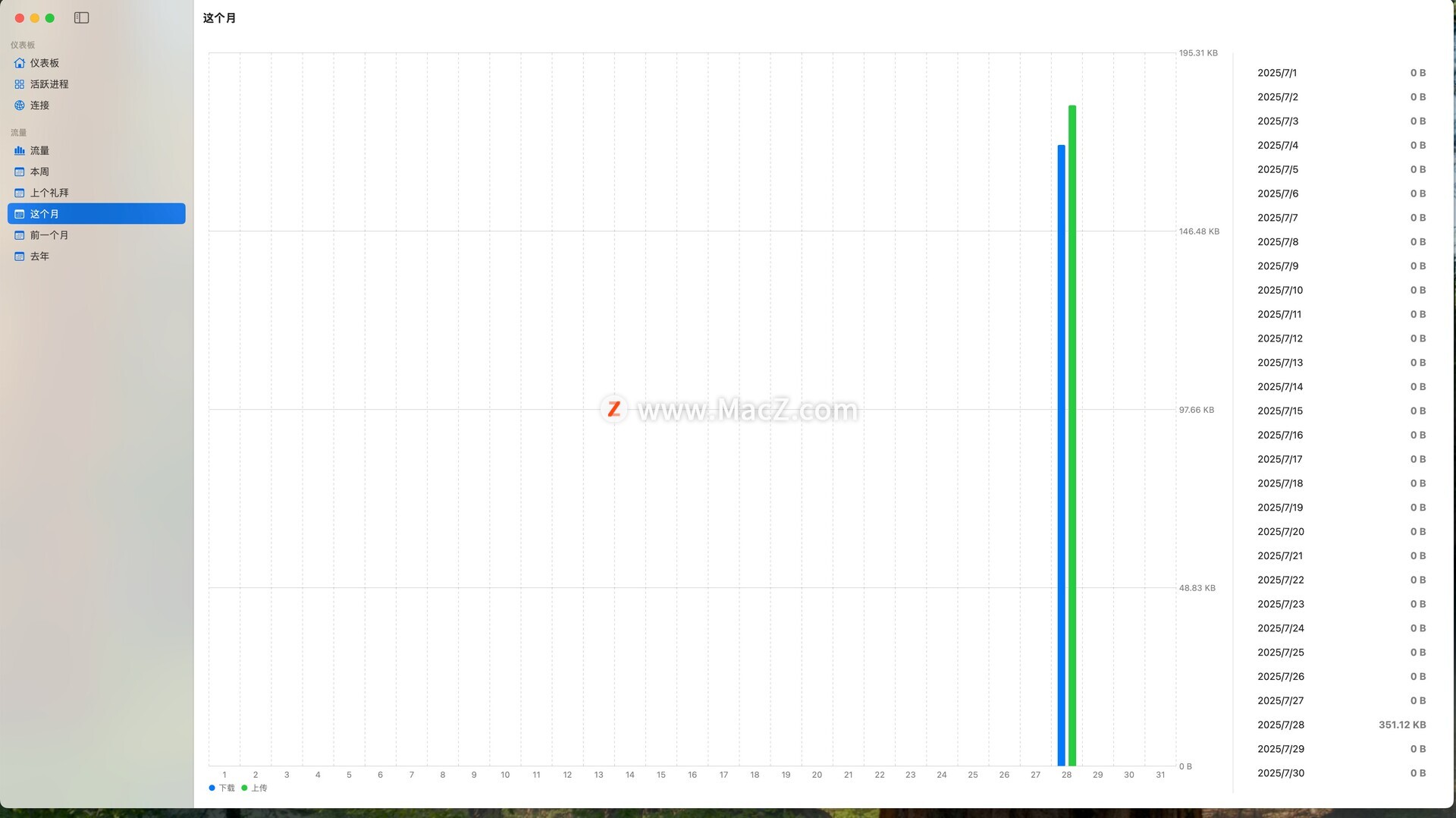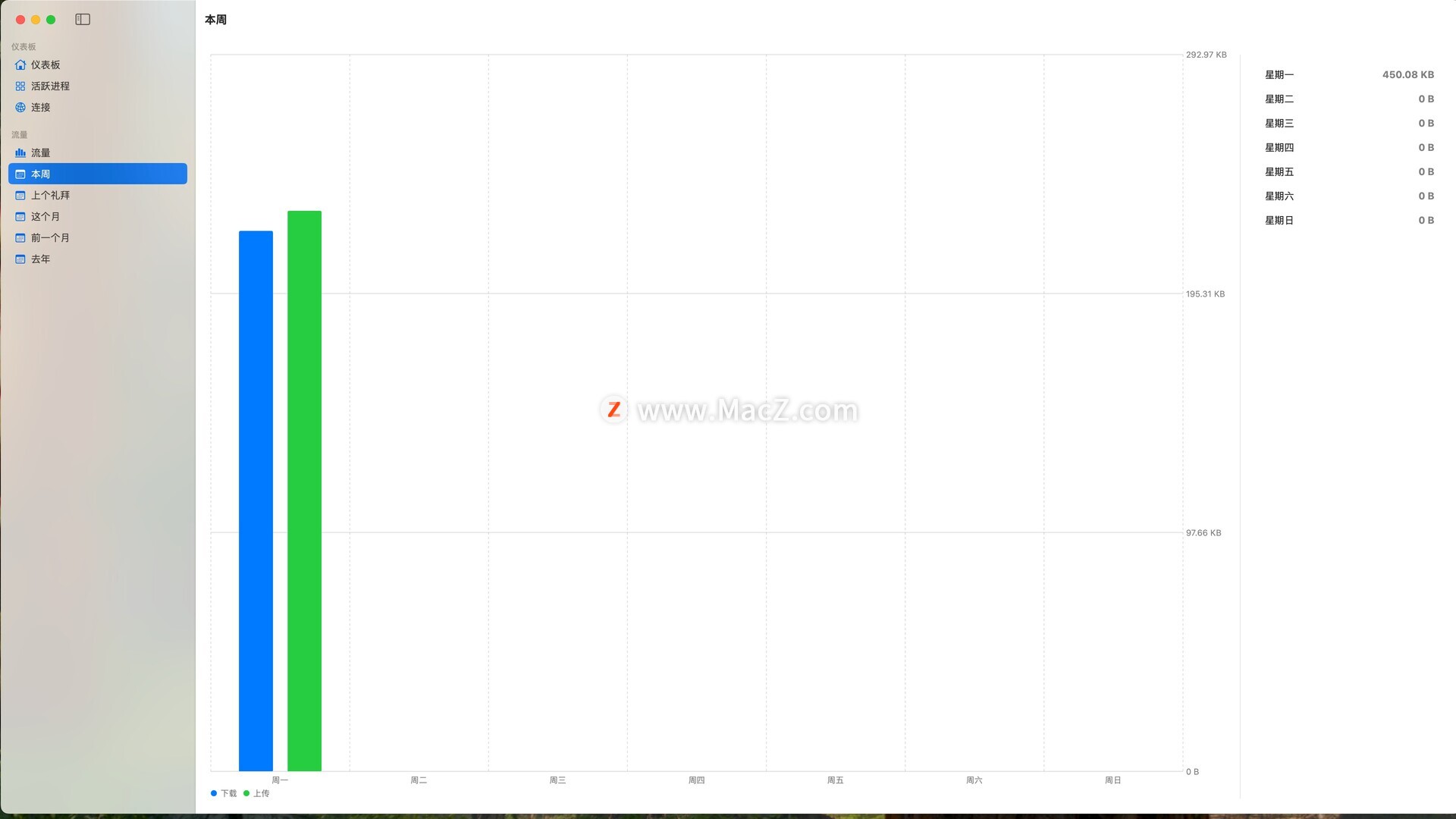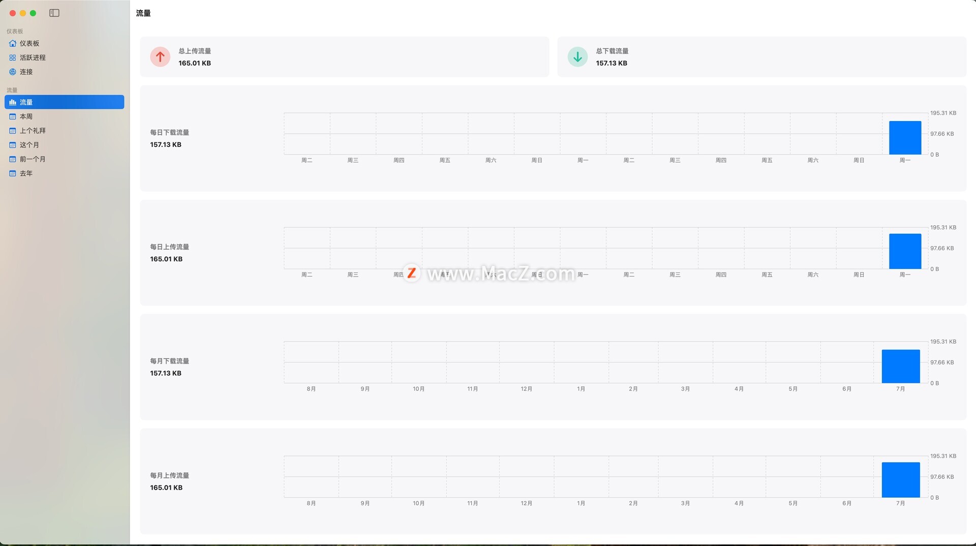 - 您使用的是包月流量套餐吗?没问题。使用 NetWorker Pro,您可以查看今天、本周、本月以及总流量的使用情况。