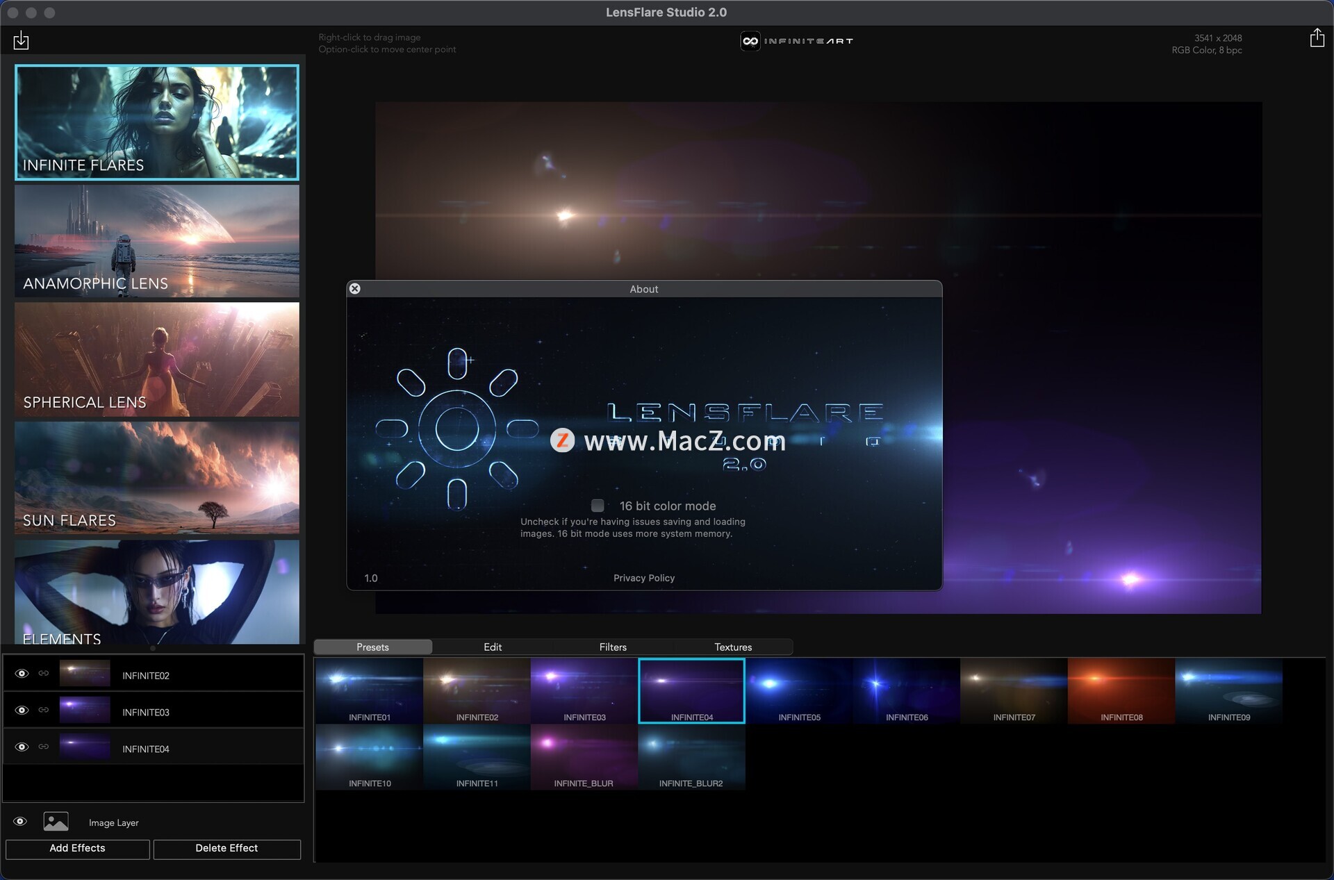 想让你的照片看起来美美哒吗?lensflare studio mac破解版是mac上一款非常专业的镜头光晕特效软件,对于照片处理、logo及品牌设计、特效处理等图像处理工作都能轻松胜任,软件默认自带了官方提供的100种滤镜特效插件,包括光晕效果、自然阳光效果、耀斑效果等,可以称得上是一款相当专业的图像特效处理工具了,能够模拟出不同地方的光源让你可以很好的编辑自己的照片,让你的照片看起来更加的美观。