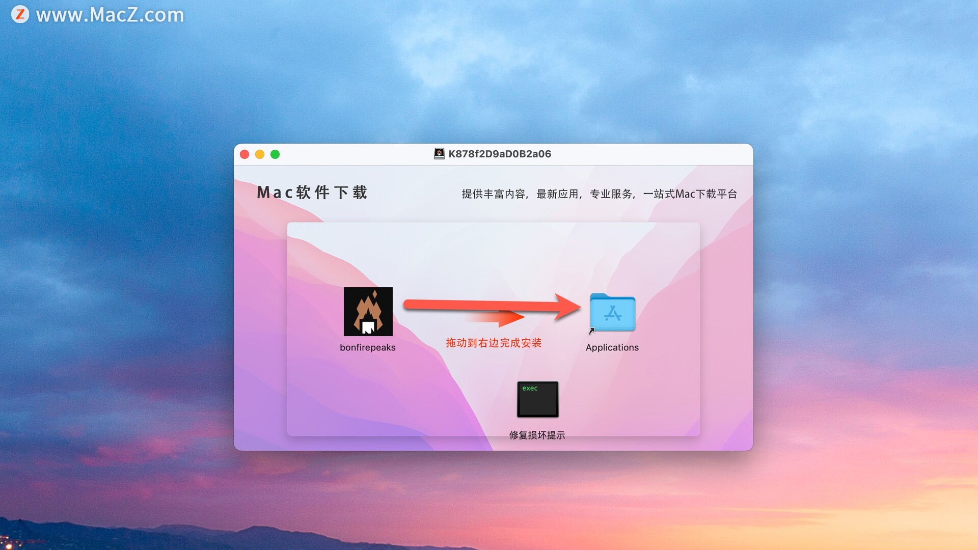 安装包下载完成后打开,将左侧文件拖动到右侧文件夹即可