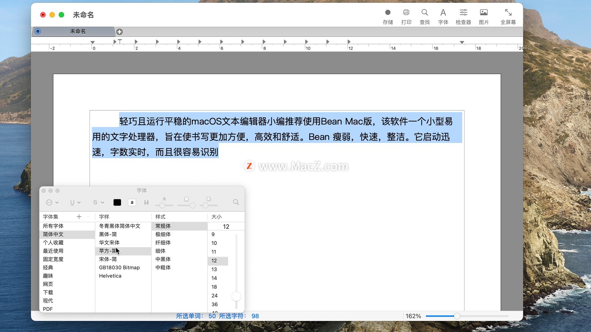 轻巧且运行平稳的macOS文本编辑器小编推荐使用Bean Mac版,该软件一个小型易用的文字处理器,旨在使书写更加方便,高效和舒适。Bean 瘦弱,快速,整洁。它启动迅速,字数实时,而且很容易识别。