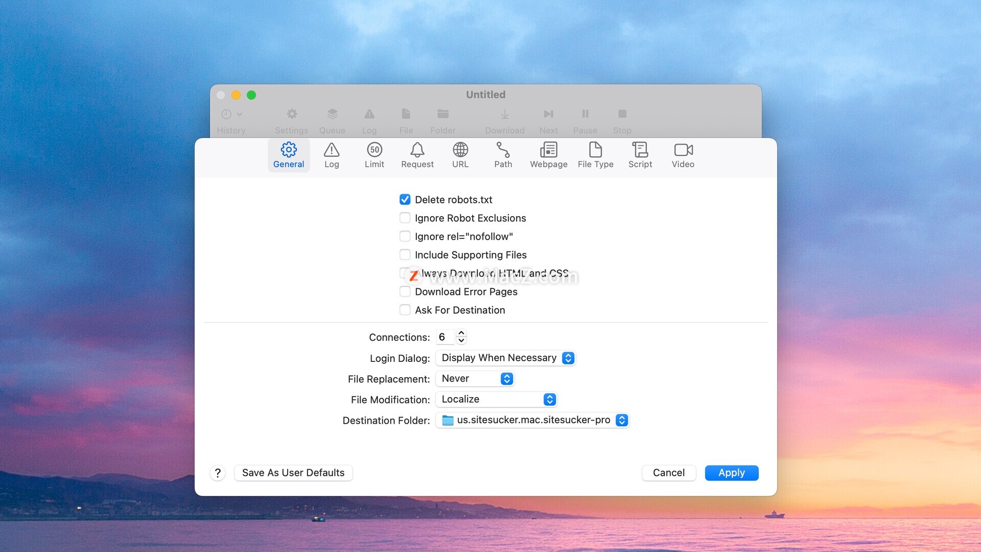 高级下载选项:SiteSucker Pro 提供了多个用于自定义下载过程的高级选项,例如按文件类型过滤、排除或包括特定 URL 或域以及限制每台服务器的下载数量。