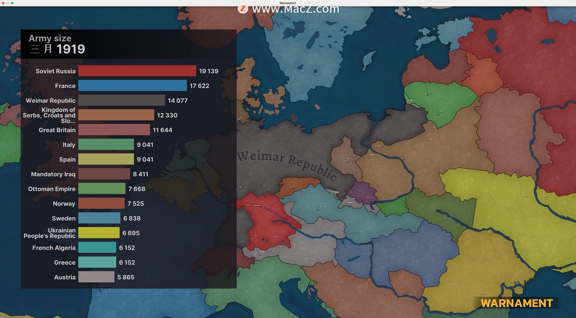 《Warnament》是一款回合制大型战略游戏,由玩家社区积极参与开发。它兼具简洁性、深度和丰富的自定义选项:你可以在午餐时间扮演神权法国,晚餐时间扮演共产主义卢森堡进攻柏林。你也可以创建自己的场景,体验一个真正狂野的架空历史——或者一个与历史完全无关的场景。