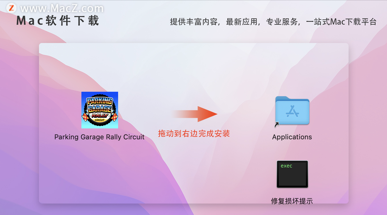 本站下载完成后,将左侧游戏拖动到右侧应用程序即可