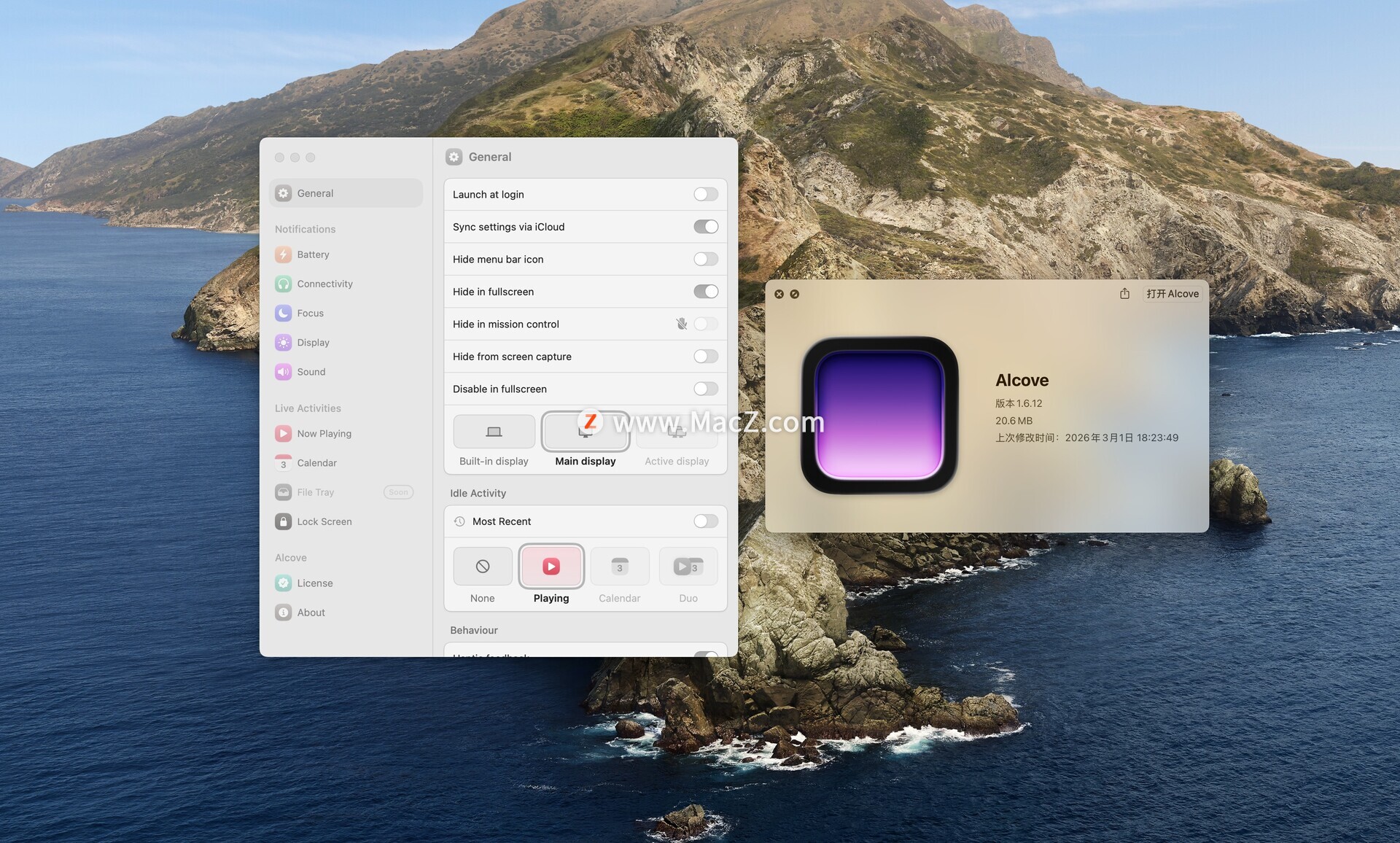 Alcove 是一款专为 Mac 设计的应用程序,它提供动态岛屿功能,让用户体验平滑过渡、即时通知和实时活动。