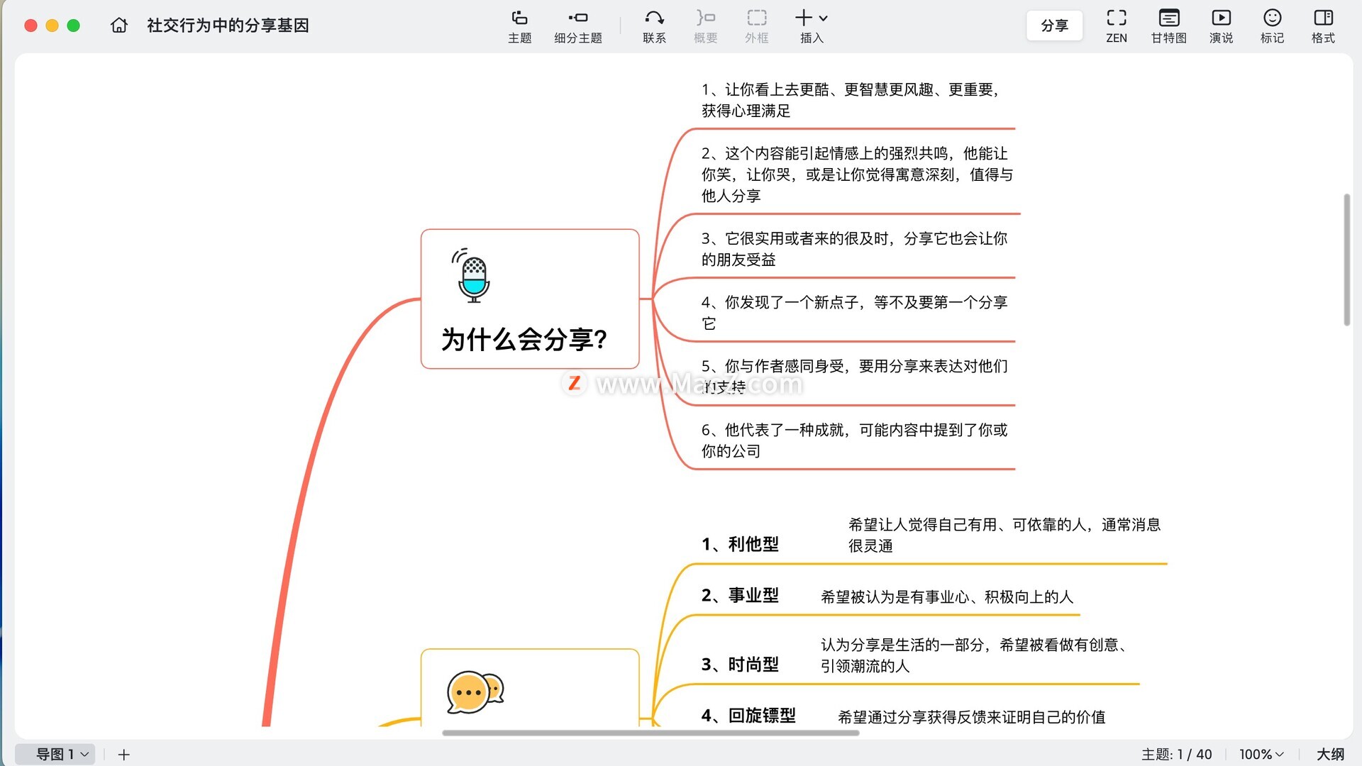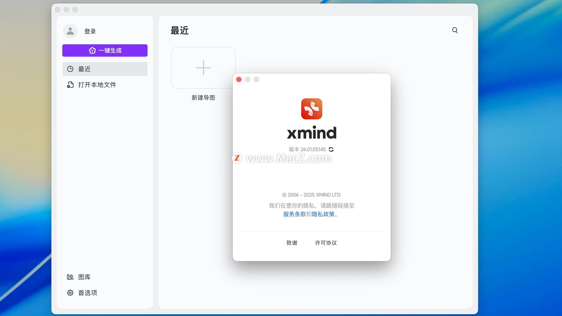 Xmind 2026 for mac号称是全球最受欢迎的思维导图工具。您可以使用它进行个人头脑风暴会议,并记录和收集您的灵感。它可以显示为思维导图或甘特图,并且与 office 完美兼容,并支持多种导出方式,方便您制作报告。