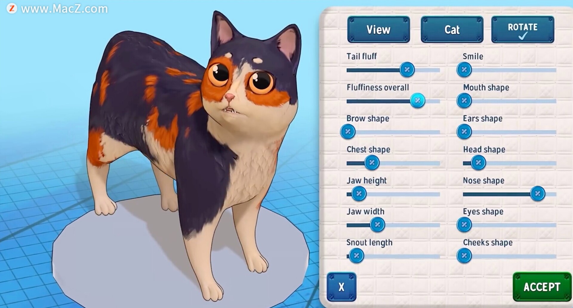 除了现有的猫之外,Quilts 和 Cats of Calico 还允许您创建自己的猫!给它们起昵称,选择它们毛皮的颜色和合适的服装。如果您愿意,您的猫将出现在运动场上。此外,您还可以更改玩家肖像和游戏背景。定制适合您的外观!