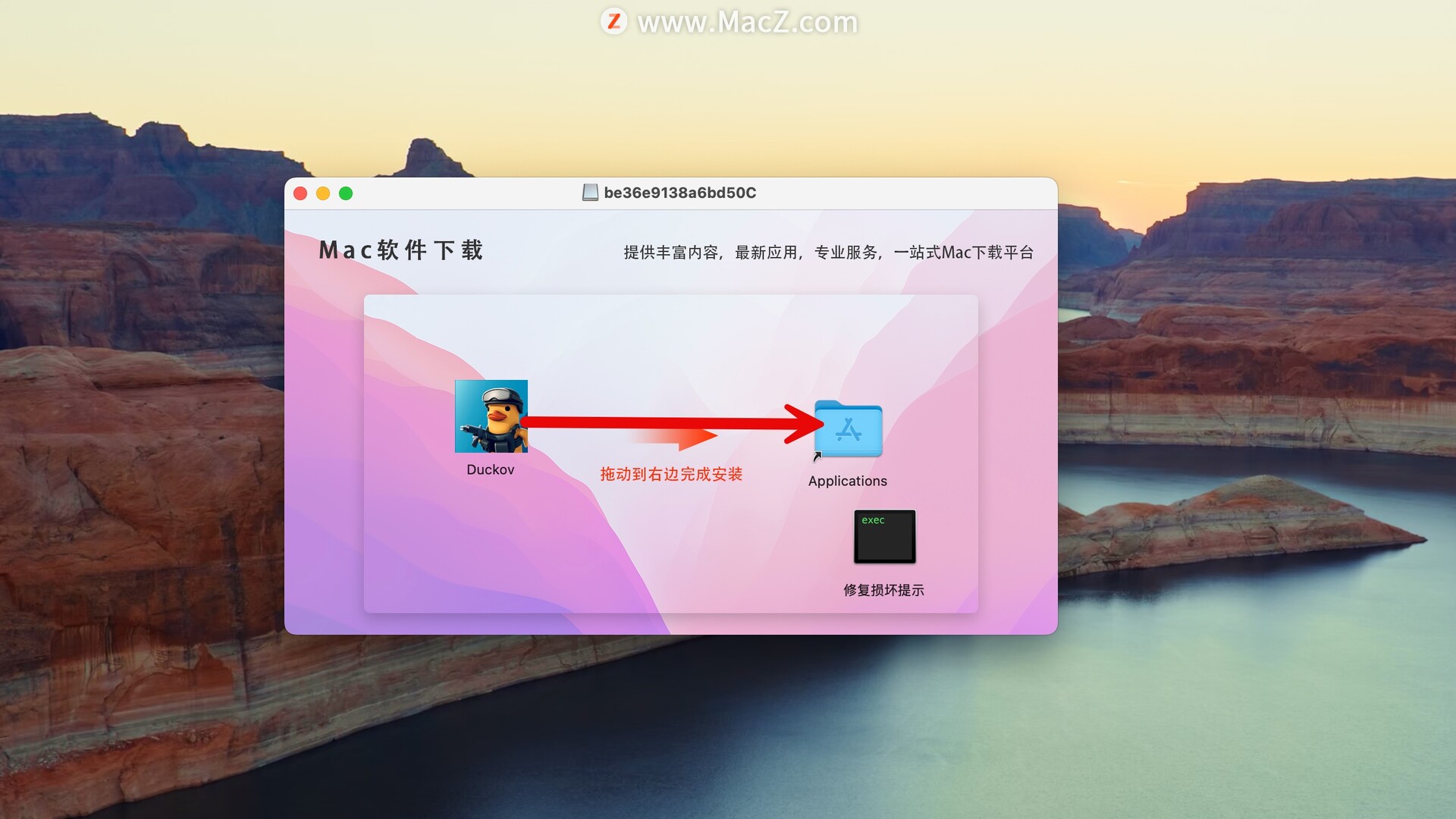 将左侧的Escape from Duckov拖动到右侧的应用程序中即可,如图