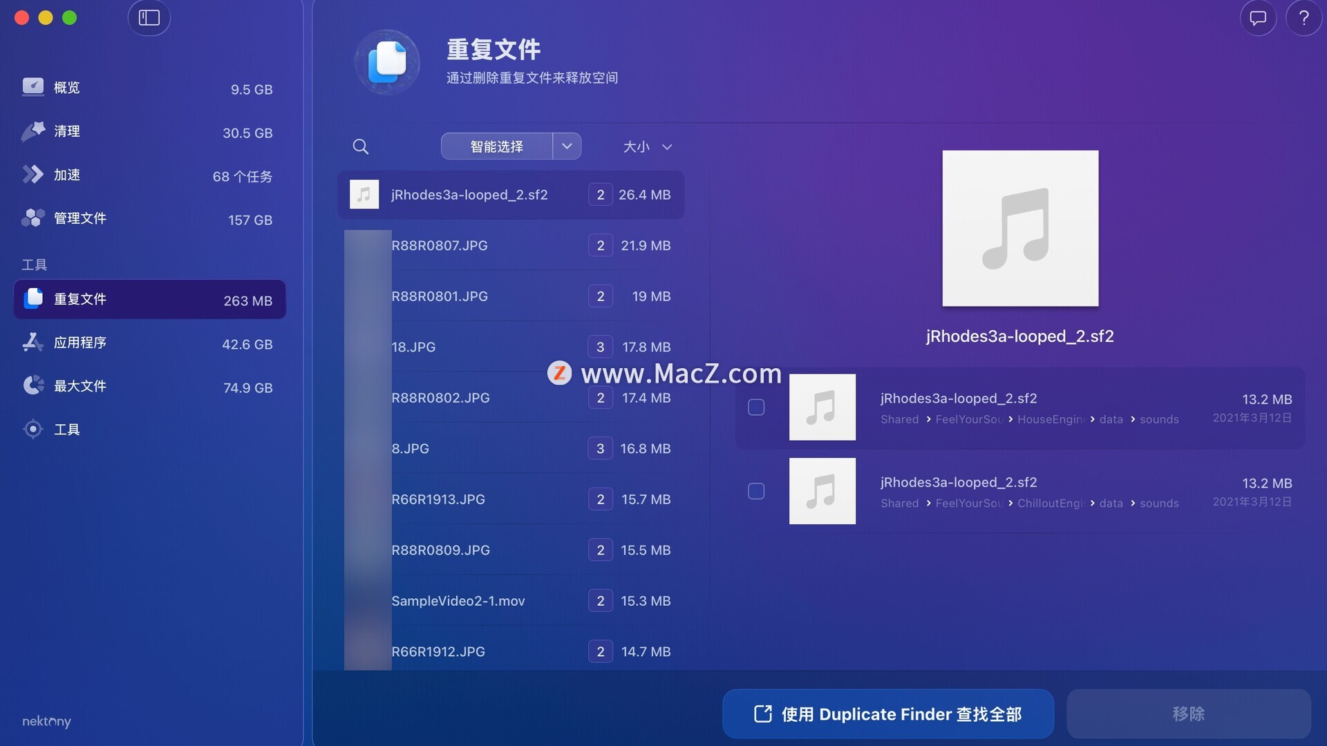 - 重复文件查找器 - 查找并删除重复的文件和文件夹,合并类似的文件夹。