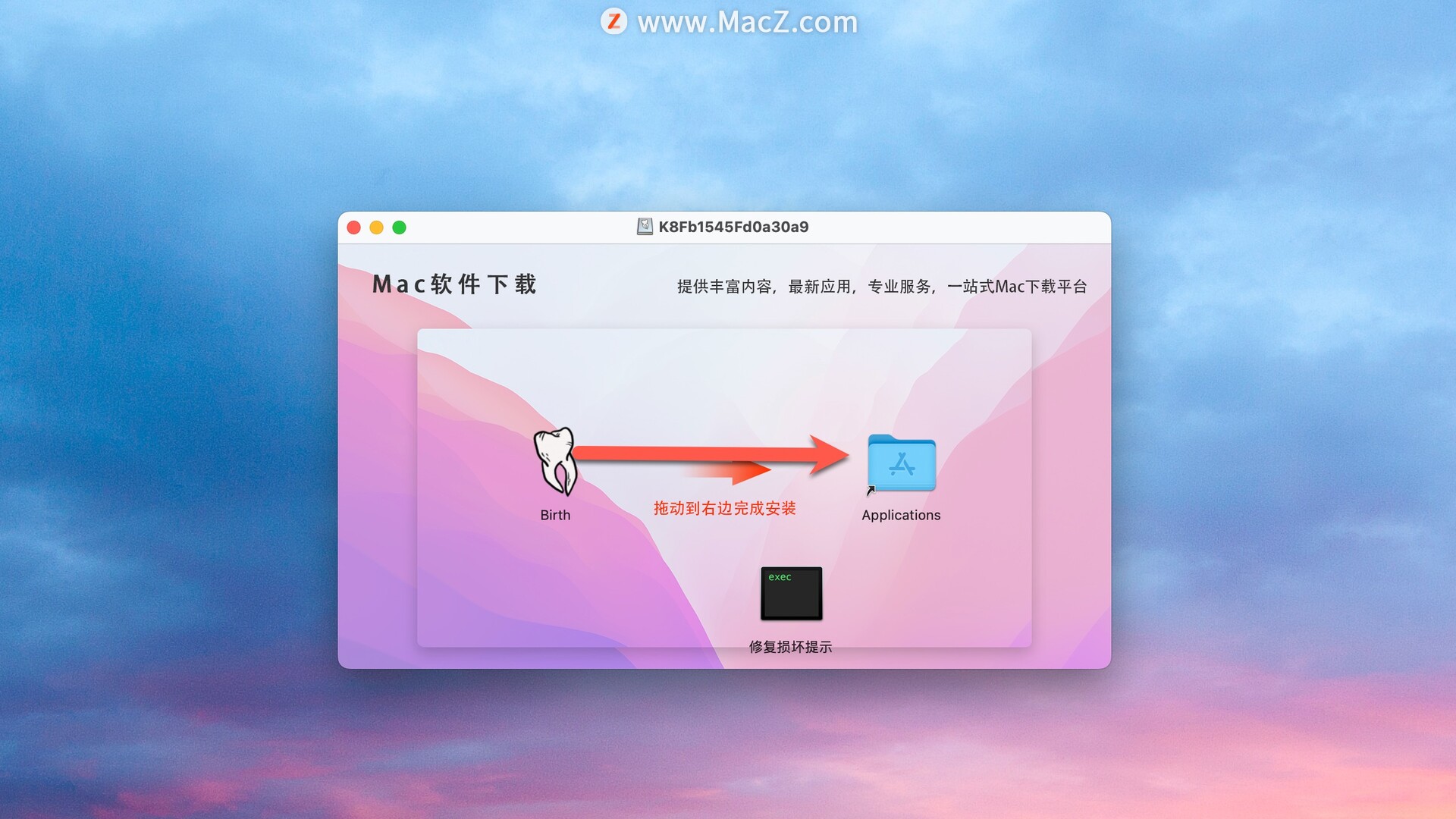 安装包下载完成后打开,将左侧文件拖动到右侧文件夹即可 中文语言切换教程: