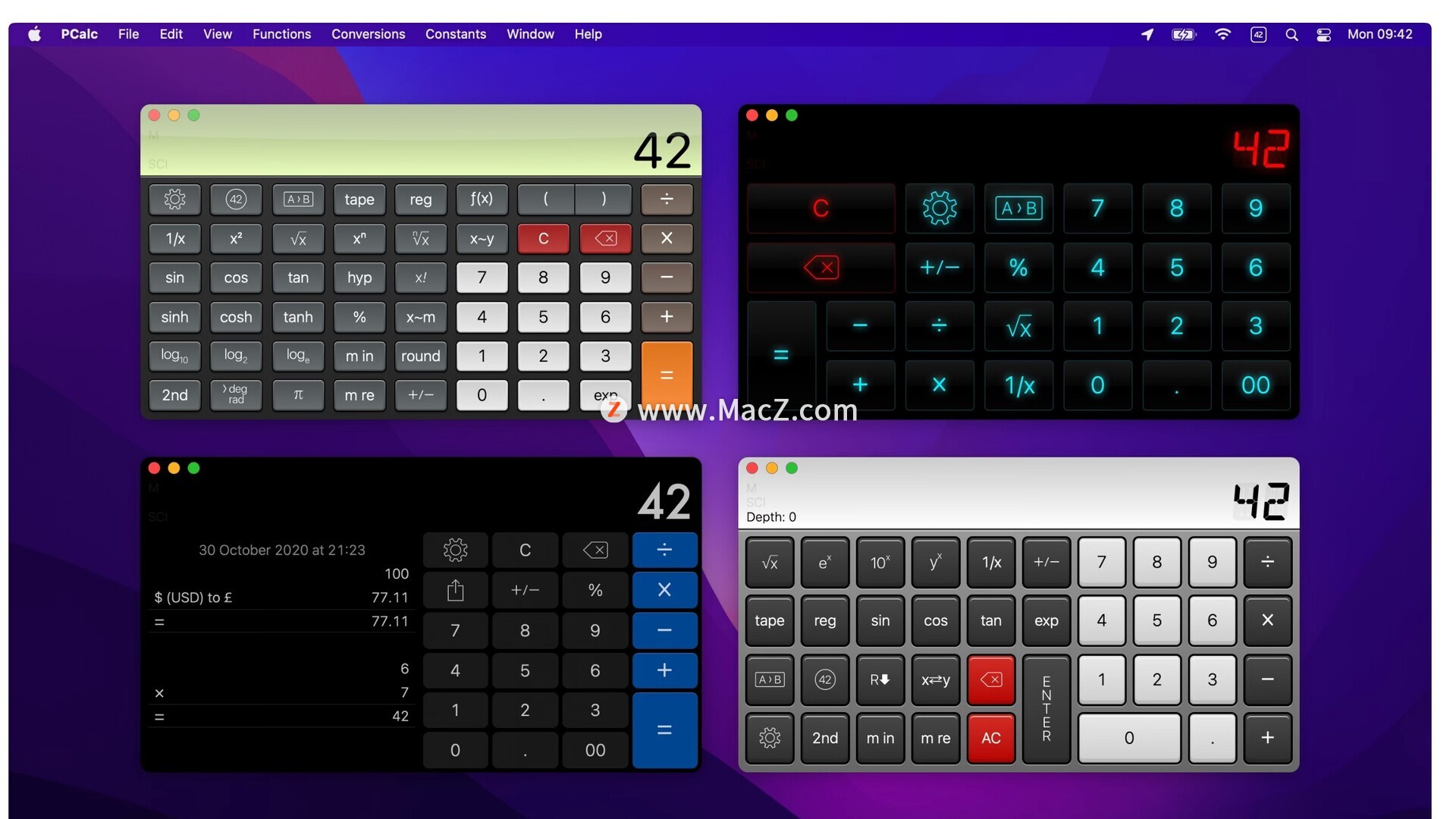 Mac计算器软件有哪些?PCalc计算器是一款有特色的科学计算器.支持十六进制,八进制和二元运算,以及一个RPN模式,在可编程功能的基础上提出了一套广泛的单位转换。