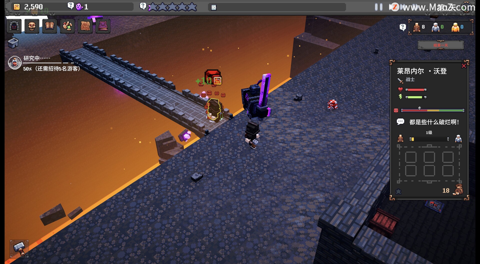 如果把你的地下城比作一家公司,那么你的怪物就是你的员工。召唤独特的怪物,招募英雄团队来考验他们的实力。