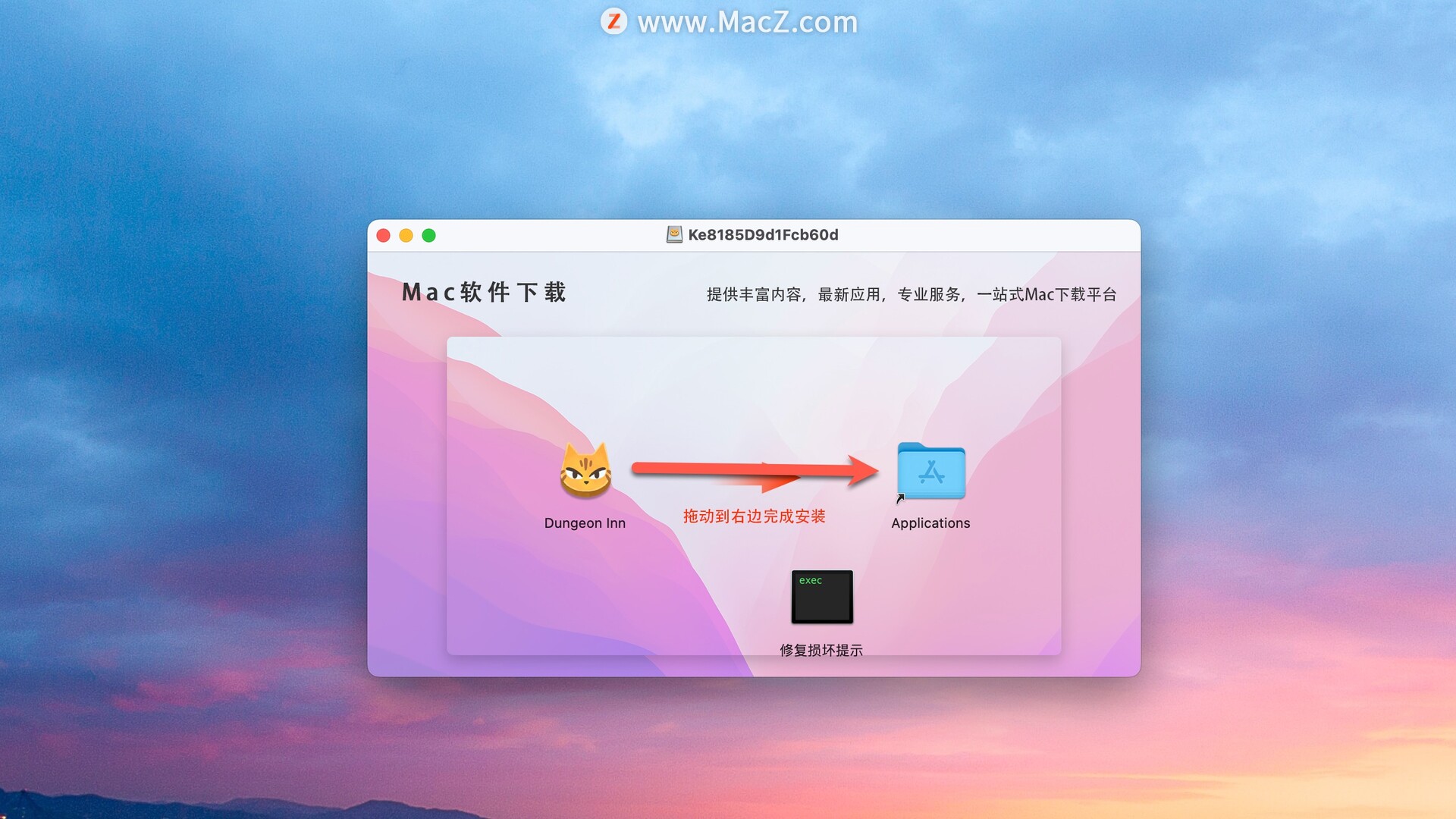 安装包下载完成后打开,将左侧文件拖动到右侧文件夹即可