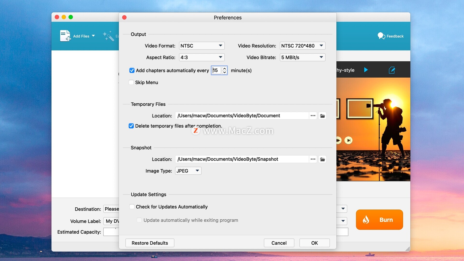 VideoByte DVD Creator 的自定义模板功能允许您通过添加背景音乐和开场影片来创建 DVD 菜单,从而获得个性化的 DVD 文件。