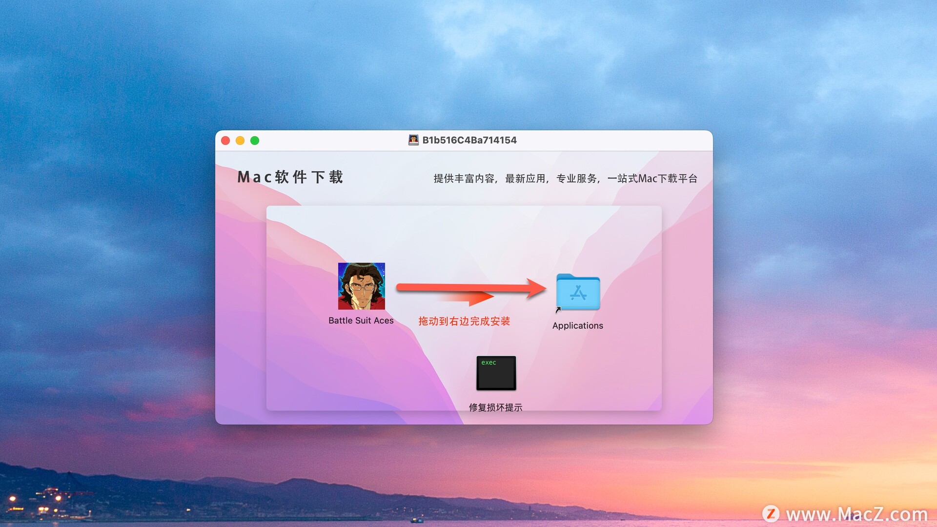 安装包下载完成后打开,将左侧文件拖动到右侧文件夹中即可