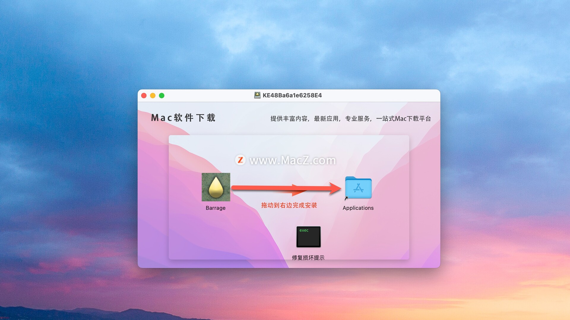 安装包下载完成后打开,将左侧文件拖动到右侧文件夹中即可