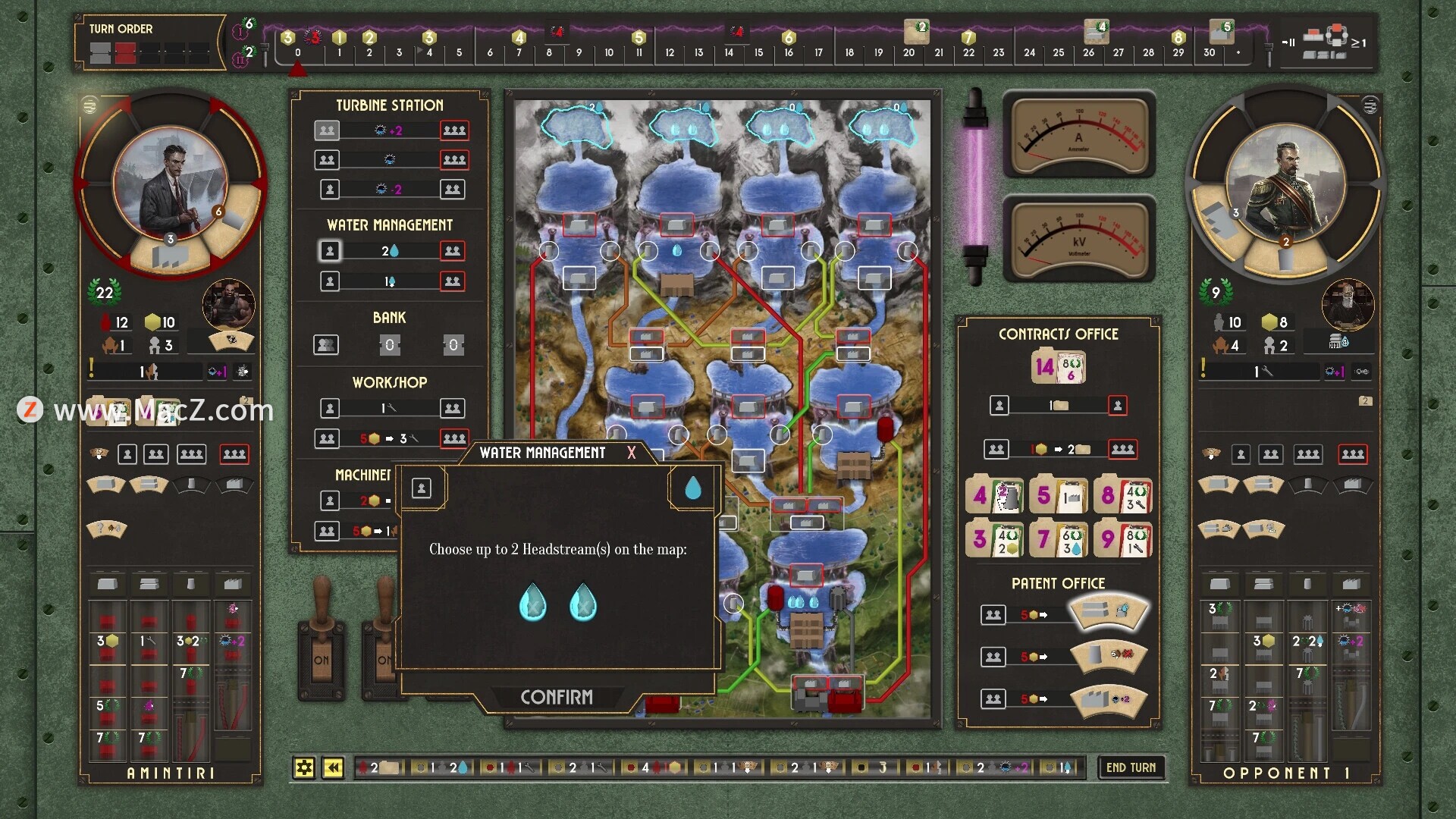 游戏采用回合制,每回合玩家只能选择一项行动。工程师数量有限,行动越强大,所需的工程师就越多,因此,谨慎管理工人是每局游戏的关键所在。