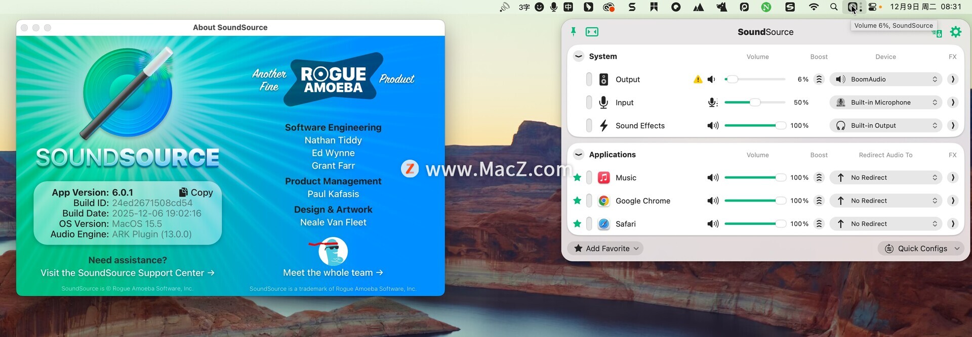 SoundSource 6 for Mac一款专业的mac音频控制器,旨在提供全局和应用级别的音频管理与增强功能。通过 SoundSource,用户可以轻松调整系统音量、独立应用音量、输入输出设备选择以及音效处理,提升 Mac 的音频体验。
