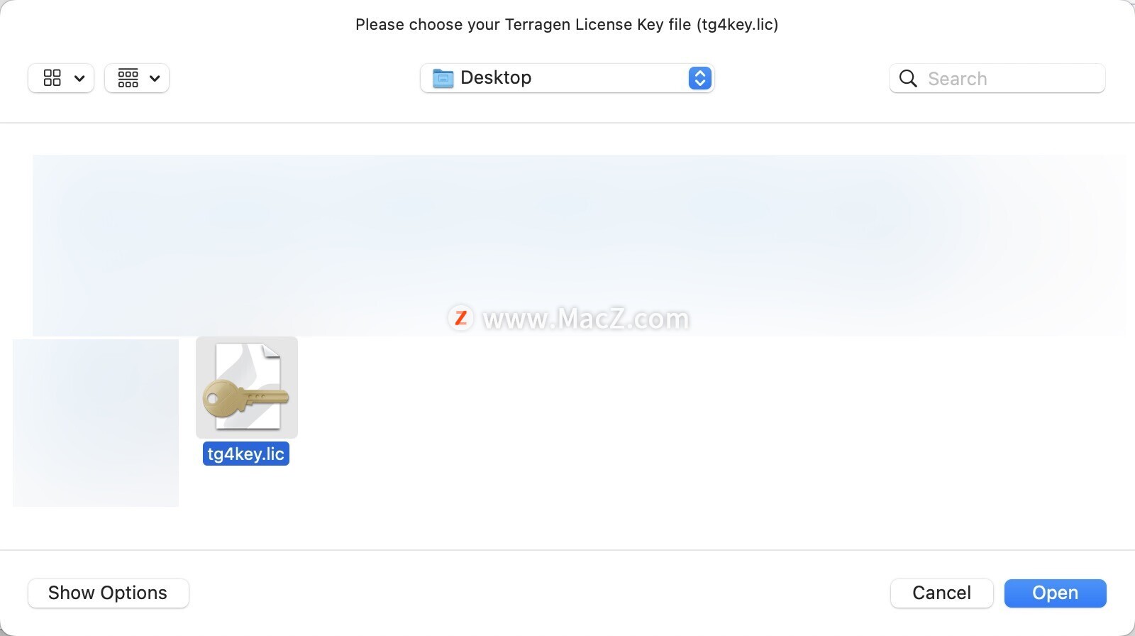 选择桌面上的秘钥文件tg4key.lic点击打开