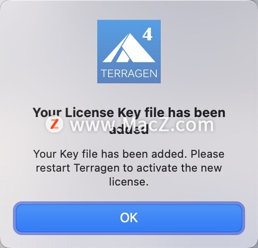 应用程序中打开Terragen 4软件,弹出购买页面,点击添加密钥文件Add Key File按钮。