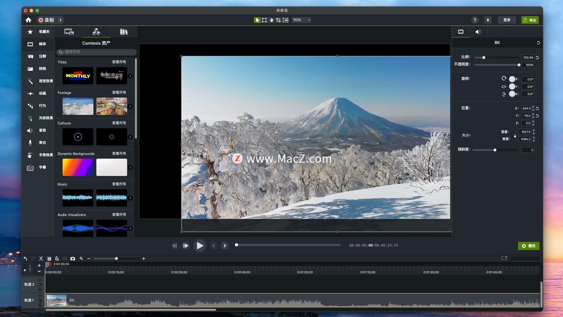 综上所述,Camtasia 2026 for Mac是一款功能强大、易于使用的屏幕录制与视频编辑软件。它不仅能够帮助用户高效地录制和编辑视频内容,还提供了丰富的动画效果和智能识别功能,以及便捷的视频分享选项。无论是教育工作者、内容创作者还是企业宣传人员,都可以通过这款软件轻松制作出专业且吸引人的视频作品。测试环境:MacOS 15.7
