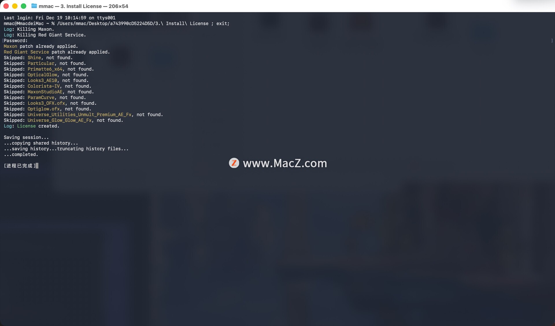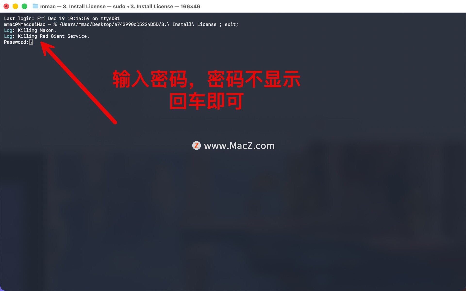 双击安装补丁后,弹出终端页面,在下图位置输入密码(密码不显示回车即可)