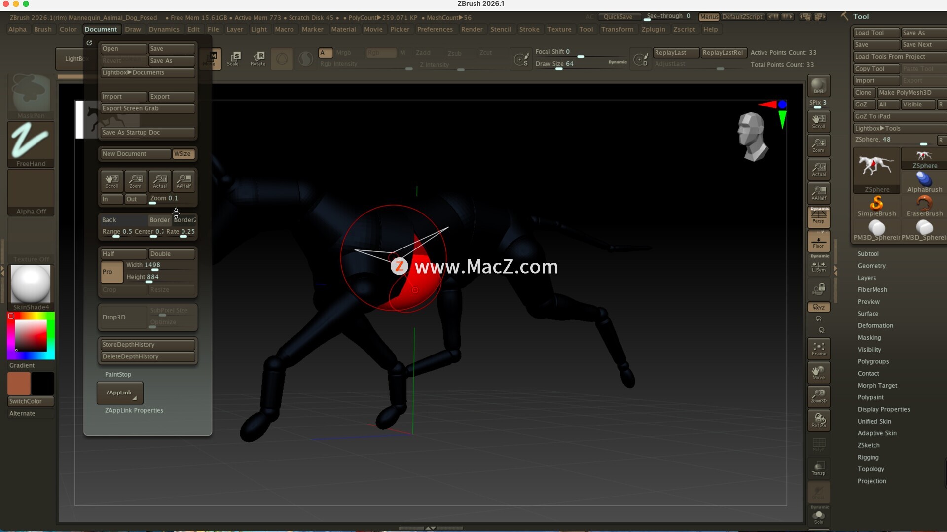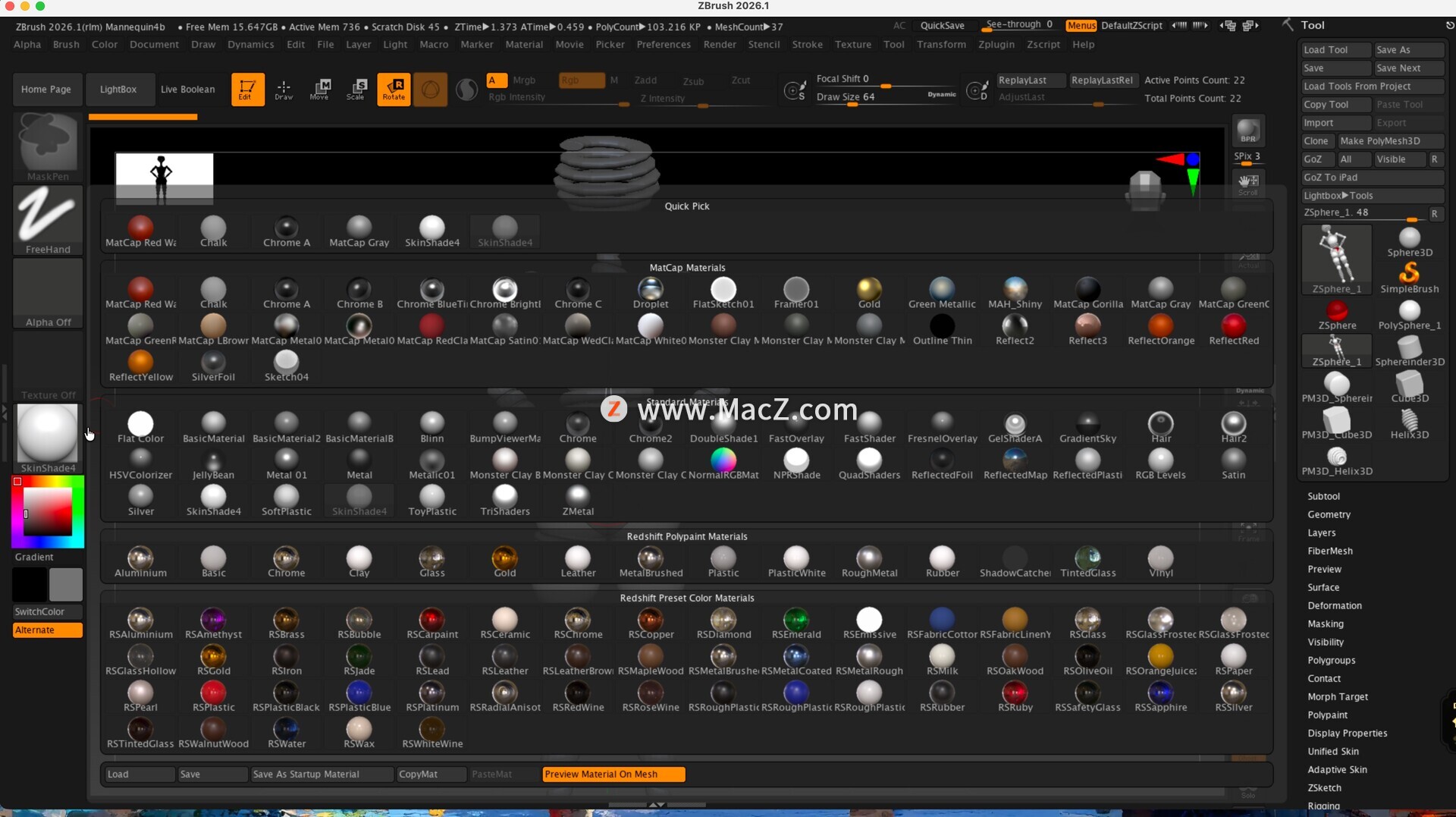 Pixologic ZBrush 2026是一款集3D雕刻和纹理绘制于一体的软件,它提供了多种功能,如图层、灯光、原材料、电影、模板、笔触等,使用户能够方便地构建三维模型、绘图和纹理。这款软件在电影、游戏开发、规划与可视化等领域受到广泛欢迎,因为它能帮助用户雕刻出非常详细的3D几何形状和纹理,为模型添加丰富的色彩方案,使得开发出的模型更有价值,满足各种产品型号规划的需求。