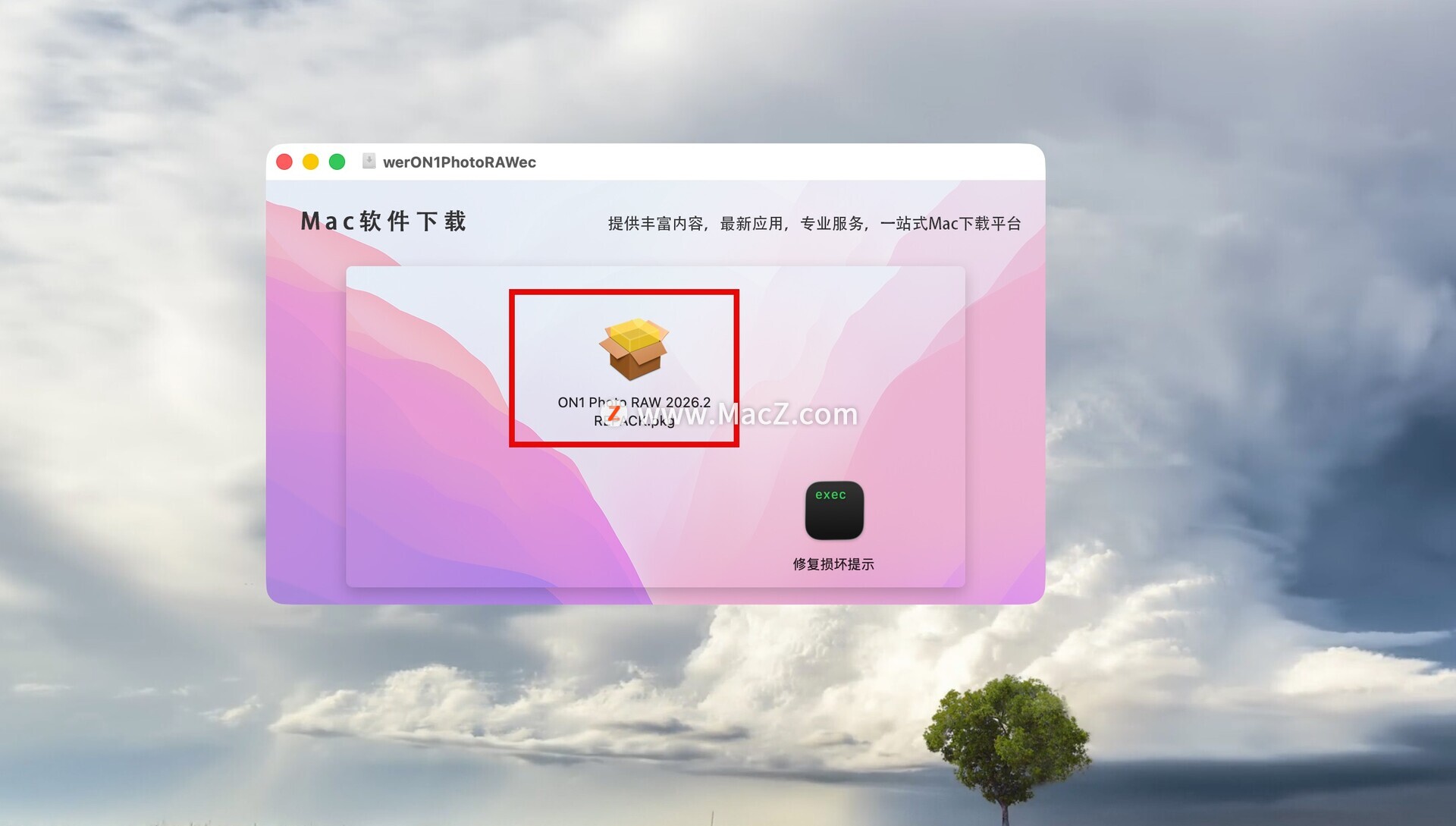 ON1 Photo RAW 2025下载完成后打开,双击.pkg文件,根据安装器提示安装完成即可