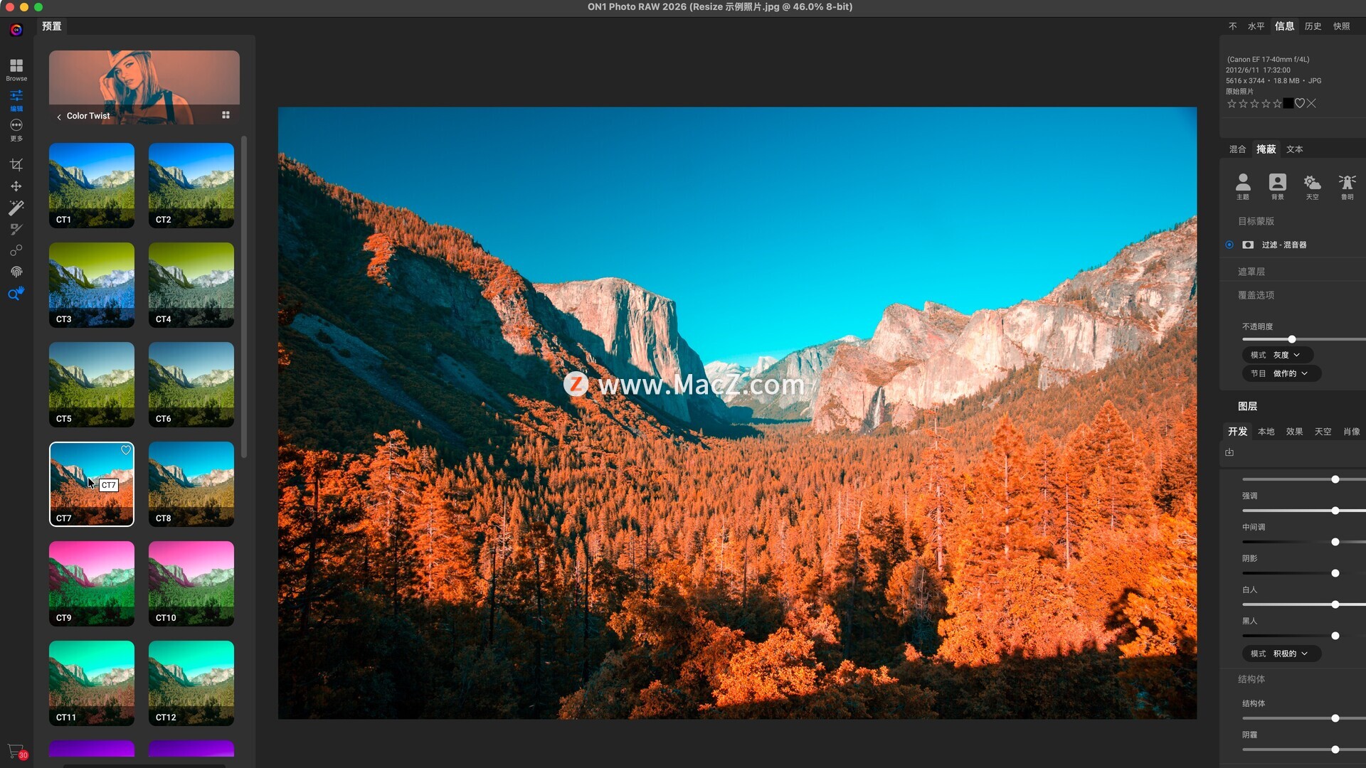 - 使用 Photo RAW 2026 新增的“分割场”滤镜,让您的风景背景更显清晰。-