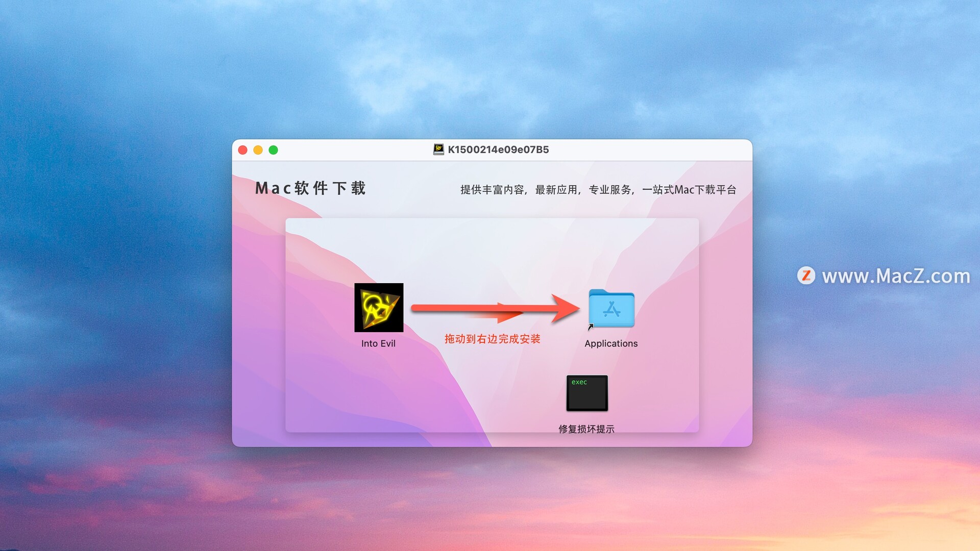 安装包下载完成后打开,将左侧文件拖动到右侧文件夹中即可