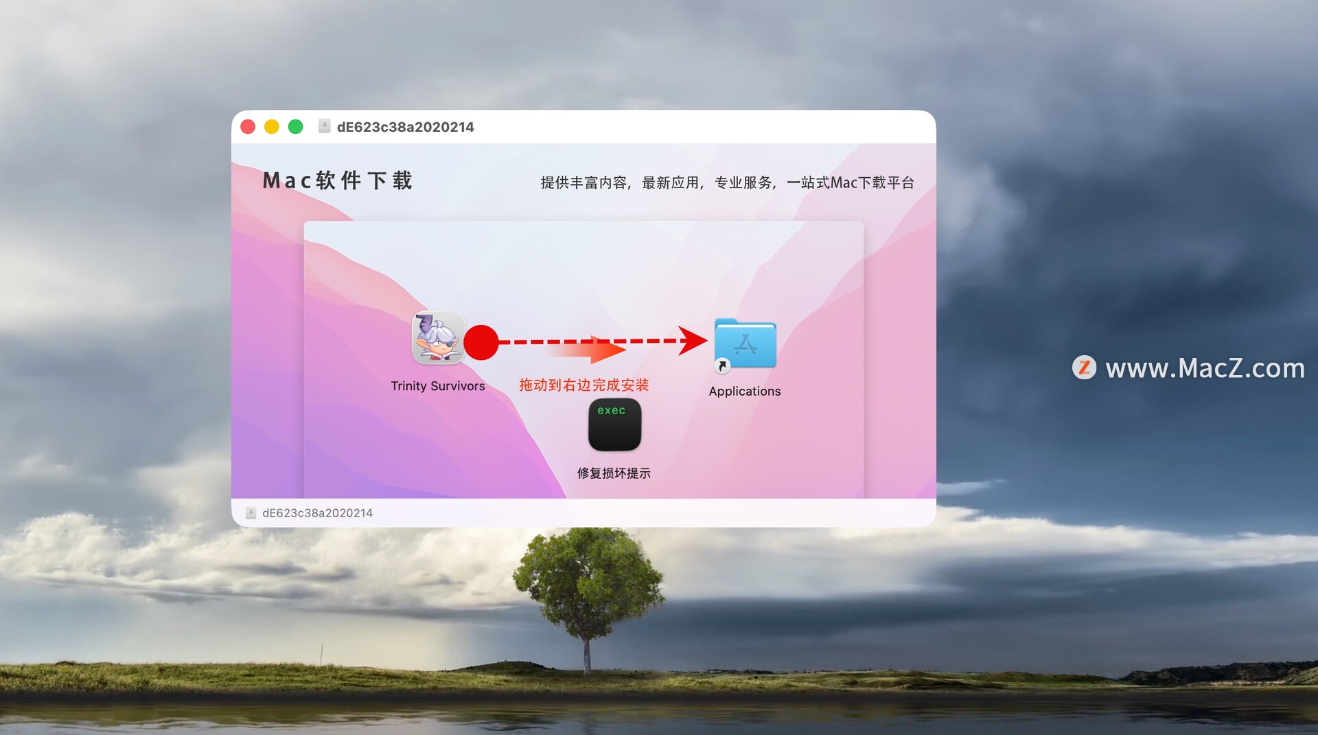 拖动Trinity Survivors到右侧应用程序中即可,如图