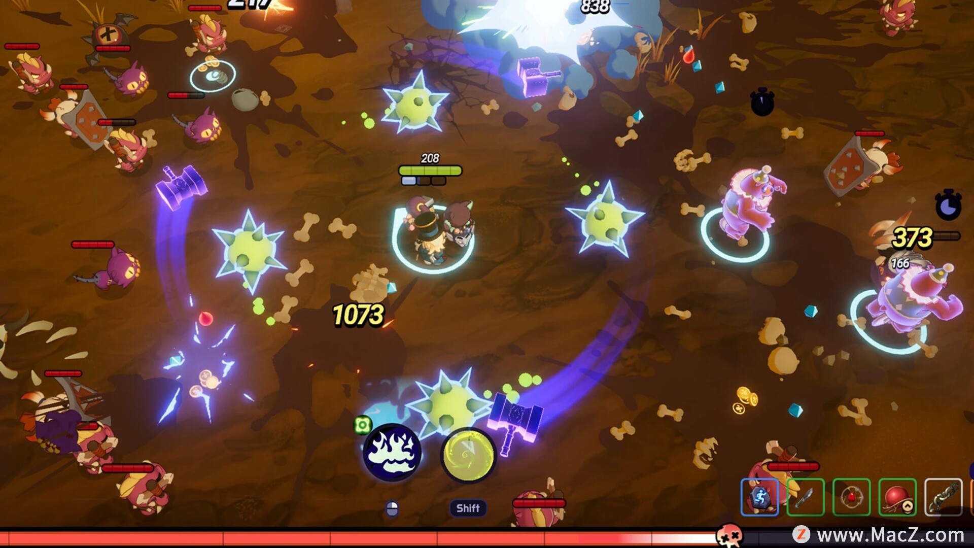 三小幸存者 Trinity Survivors for mac是一款可以在线合作的rouguelite动作游戏。从各具特色的角色中选择自己的英雄,组建三人小队,找出最佳技能搭配策略,享受高效刺激的协作杀敌效果。加入双人在线合作模式,与好友联手对抗兽人大军,力争高分!