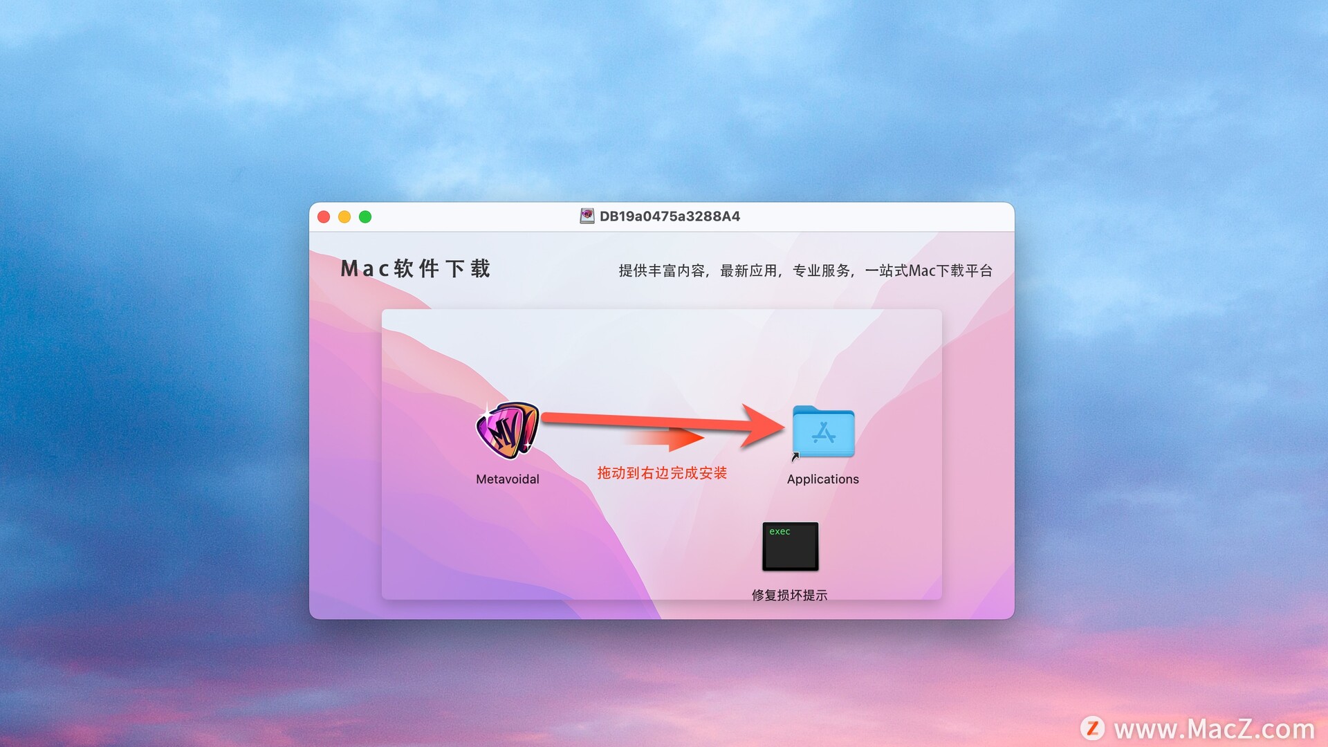安装包下载完成后打开,将左侧文件拖动到右侧文件夹中即可