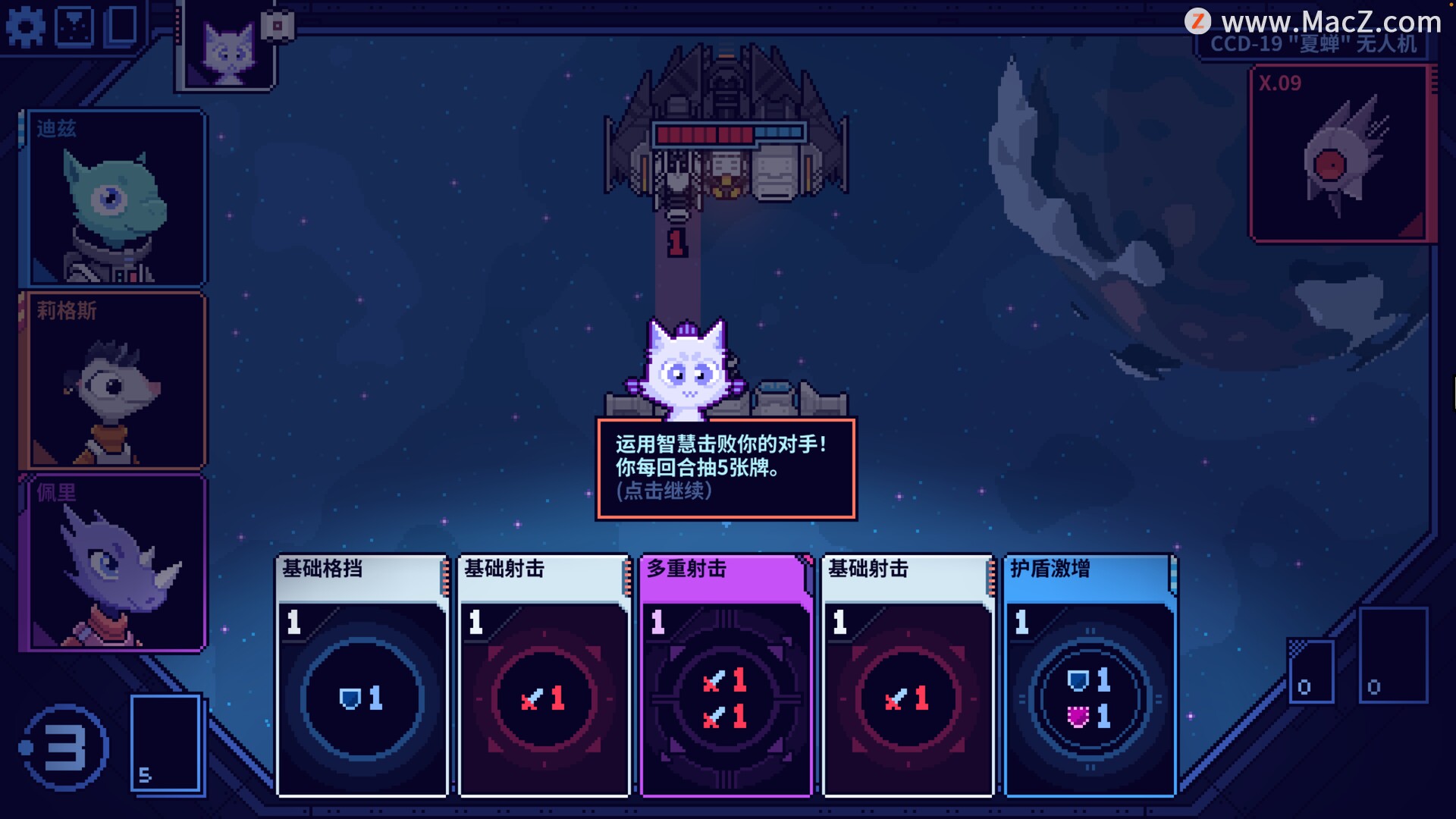 用卡牌指挥你的船员!升起护盾保卫你的战舰?躲避敌人的导弹和炮火,在最后一刻避免损失?还是先发制人,摧毁敌人的武器?绕到敌人侧翼,逃离即将到来的灾难,抵达钴核!