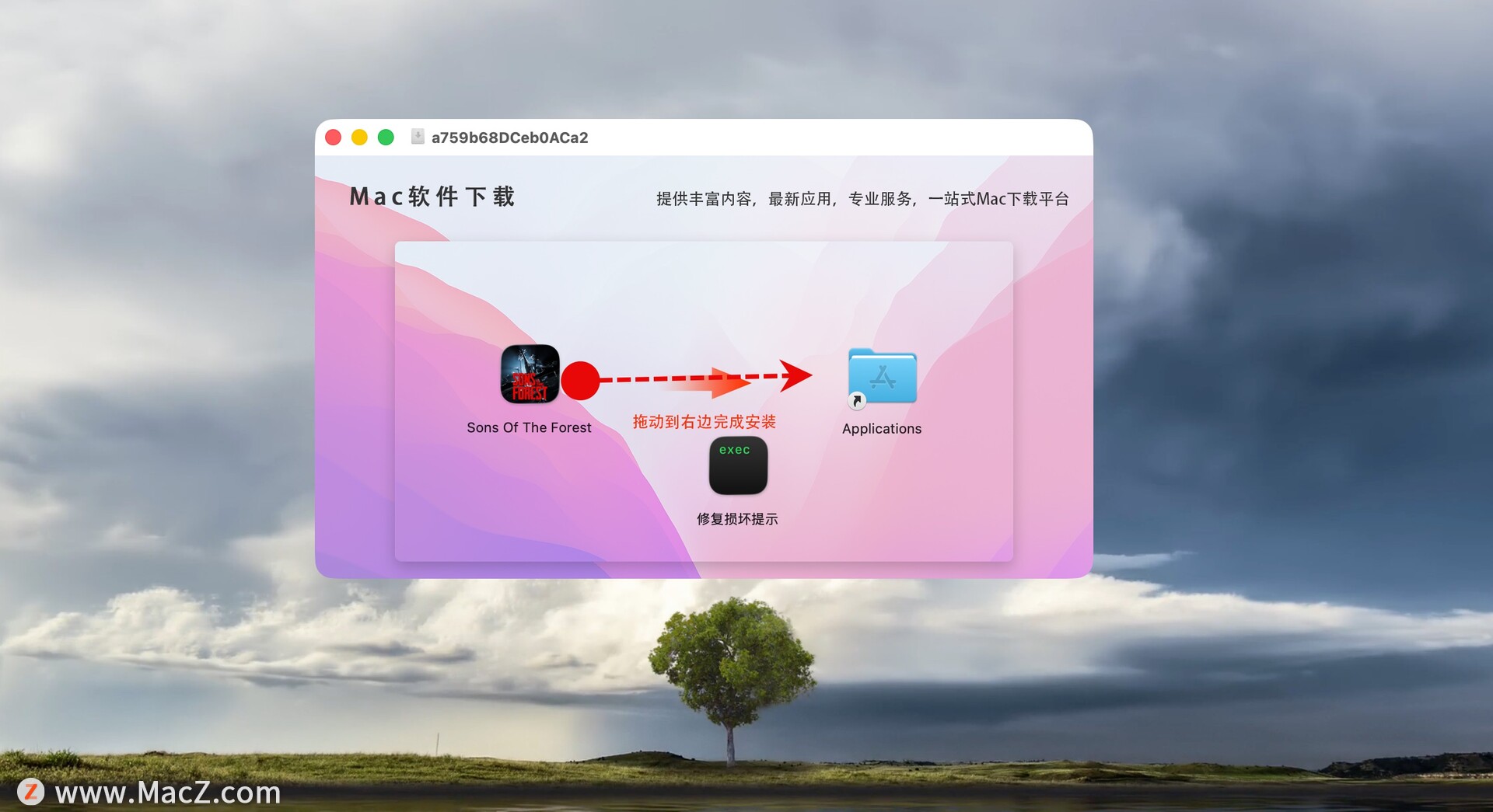 将Sons Of The Forest拖动到右侧的应用程序中,如图