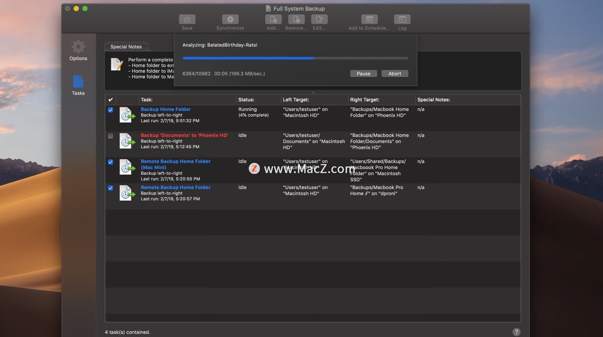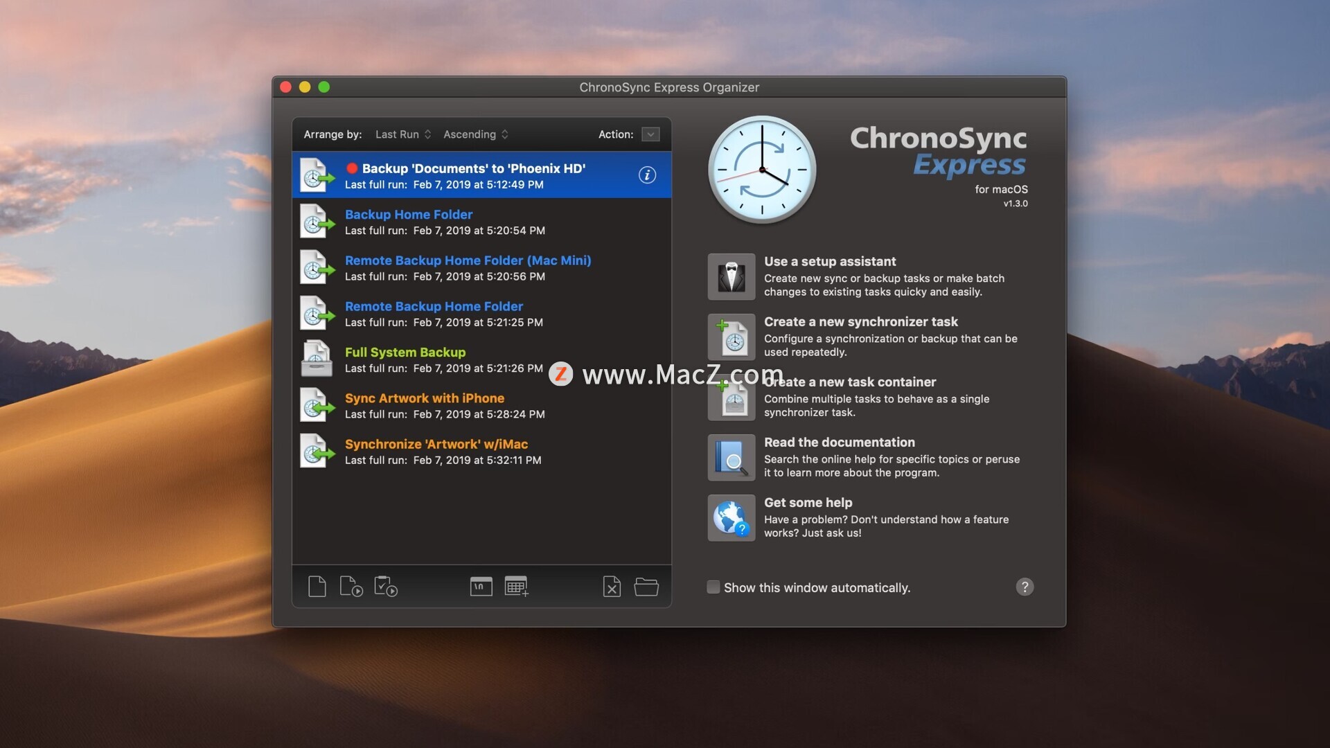 计划备份的隐形模式:ChronoSync以隐身模式启动,用于计划备份,并在所有计划进程完成后自动退出。