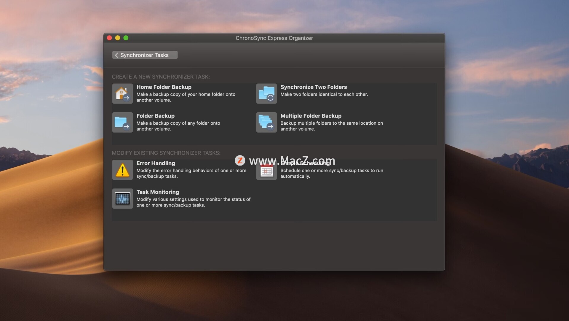 ChronoSync 12是一款专为 macOS 平台开发的专业级数据同步与备份工具,适用于个人用户和小型企业进行本地或远程的数据管理。它支持文件夹同步、自动备份、时间表执行和远程服务器镜像等功能,能够灵活应对不同场景下的数据保护与同步需求。ChronoSync 完全基于 macOS 构建,兼容 Apple Silicon 和 Intel 架构,在性能与稳定性上表现优异。用户可通过图形化界面设定复杂的同步规则,也可将任务设置为周期性执行,实现无人值守的自动化数据管理。作为一款功能全面但界面清晰的软件,ChronoSync 为 Mac 用户提供了强大的本地与远程数据同步解决方案。