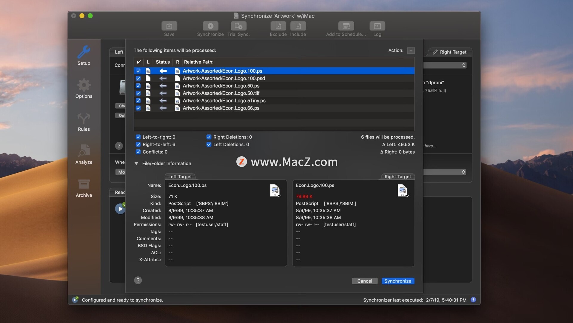 - 添加了逻辑,以便在首次启动ChronoSync 12时创建应用程序支持/ChronoSync的备份副本(仅当之前启动了以前版本的ChronoSync时)。