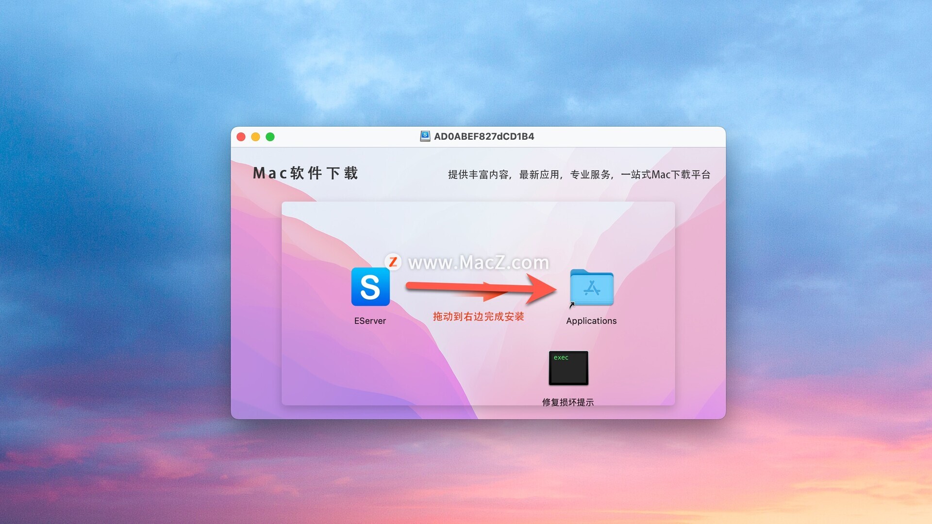 安装包下载完成后打开,将左侧文件拖动到右侧文件夹中即可