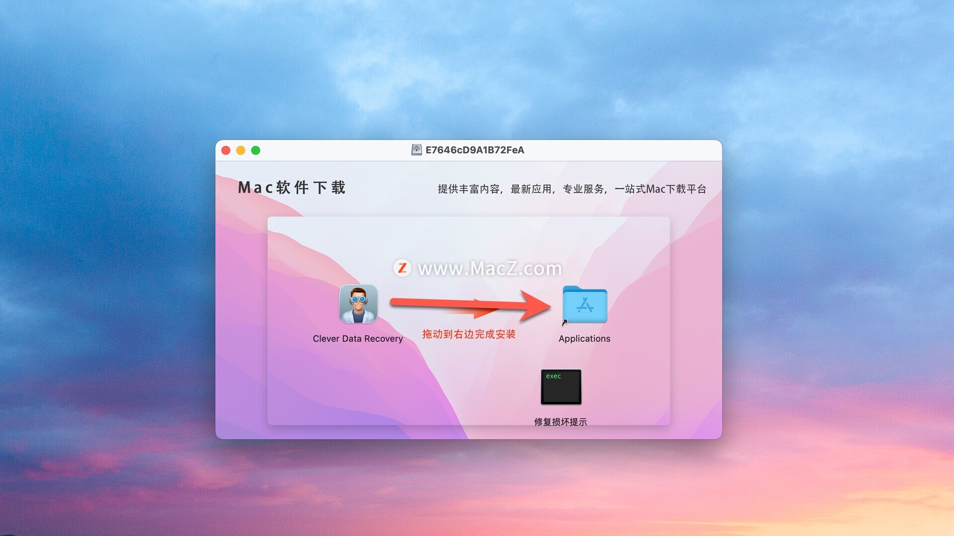 安装包下载完成后打开,将左侧文件拖动到右侧文件夹中即可