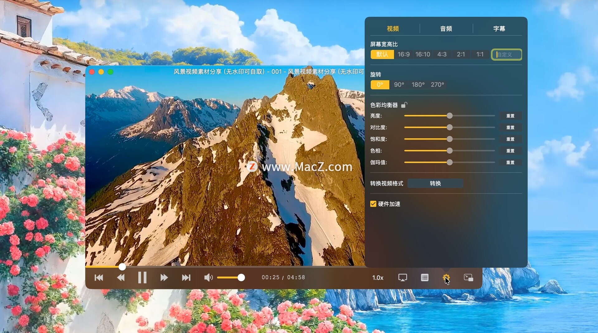 - 调整播放速度,范围从 0.25 倍到 4 倍。