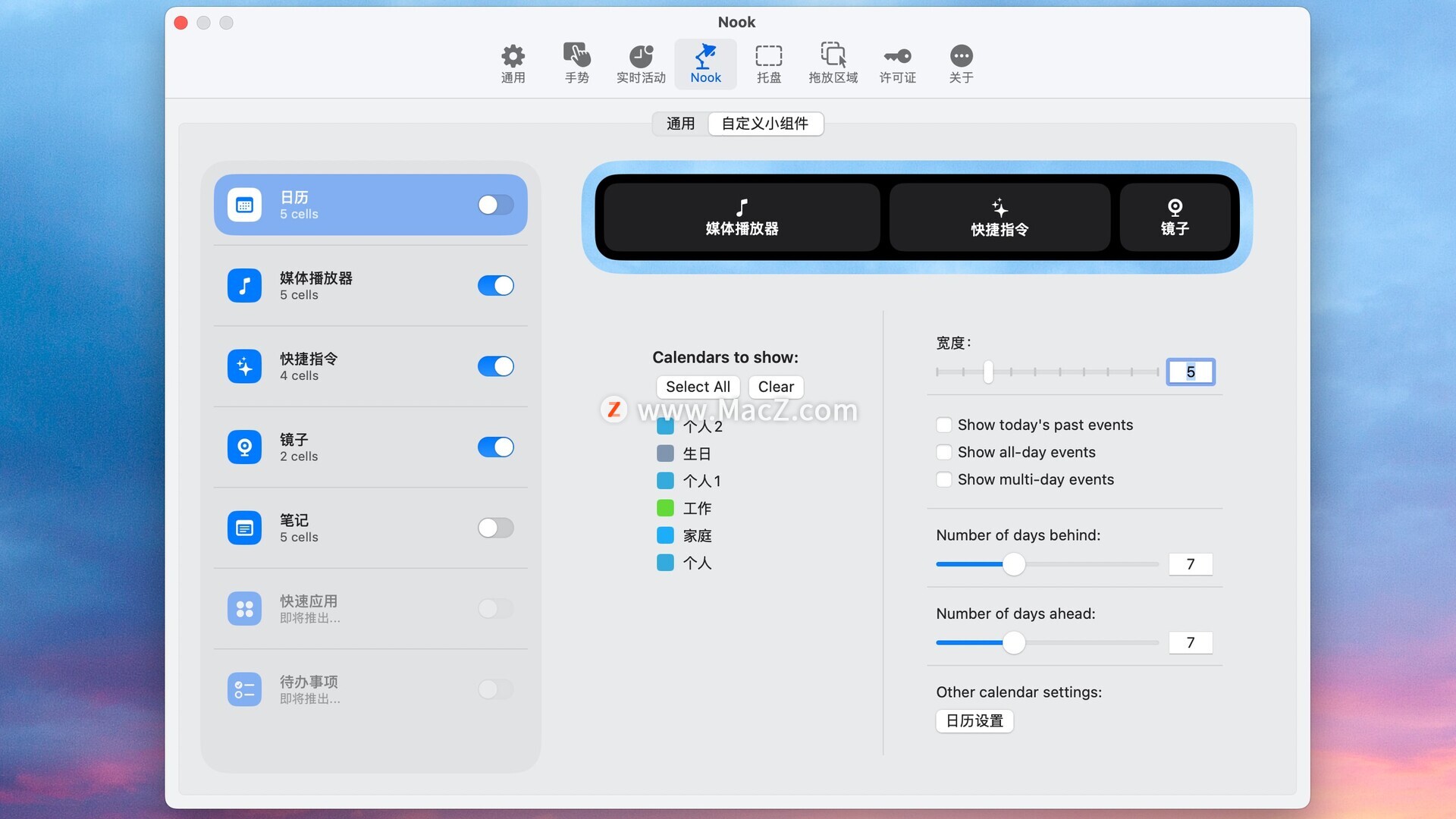 小部件、实时操作、文件架、上千种选项,NotchNook 真可谓是实用工具中心。