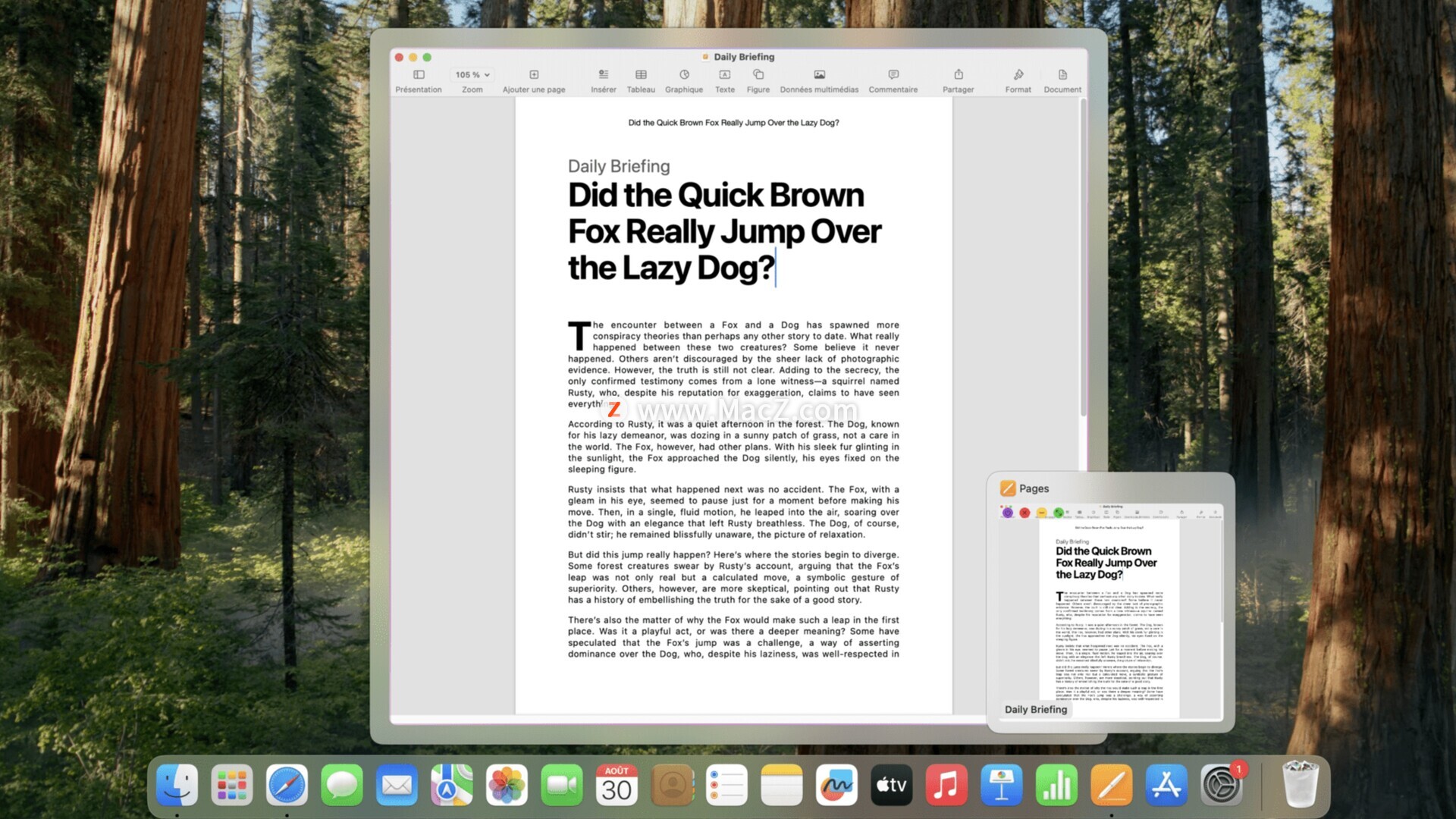 将鼠标悬停在日历应用上,即可查看当天所有日程。通过 Dock 栏上的即时日历预览,再也不会错过任何约会。