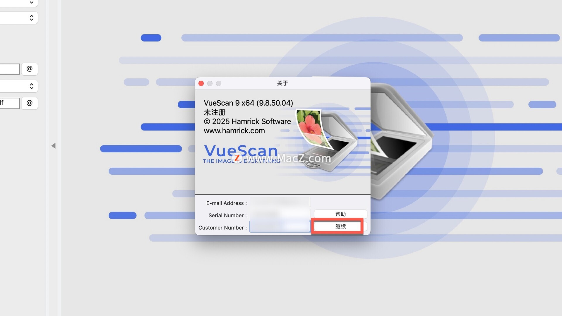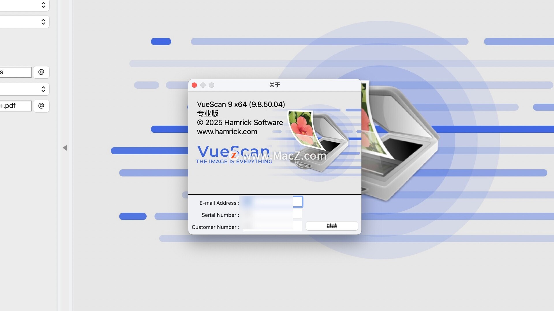 将注册码及邮箱及用户编号分别复制粘贴到注册框中,点击继续即可(请先输入序列号!)