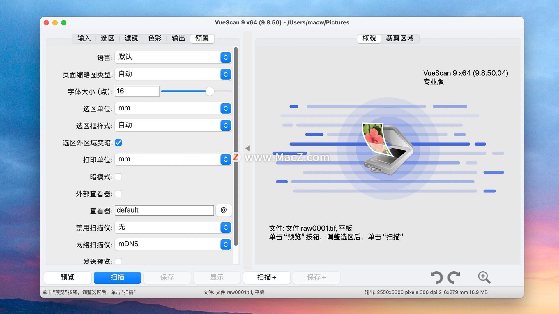 VueScan 是一款适用于macOS的扫描应用程序,可替代您扫描仪自带的软件。它兼容平板扫描仪、文档扫描仪和胶片/幻灯片扫描仪。VueScan 深受家庭用户和大型机构的信赖,是那些不支持原厂软件的扫描仪或需要更强大扫描功能的用户的理想之选。