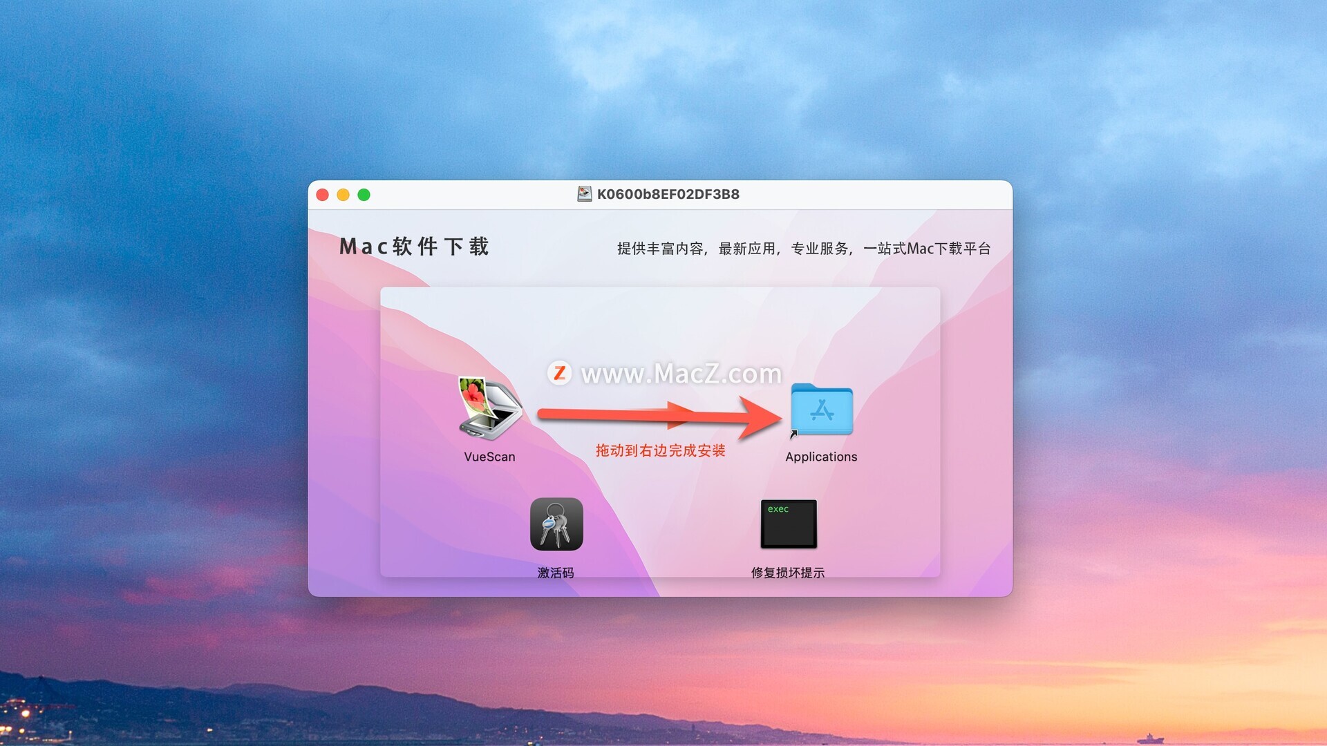 断网安装破解或者使用防火墙阻止应用联网!!!安装包下载完成后打开,将左侧应用拖动到右侧文件夹中