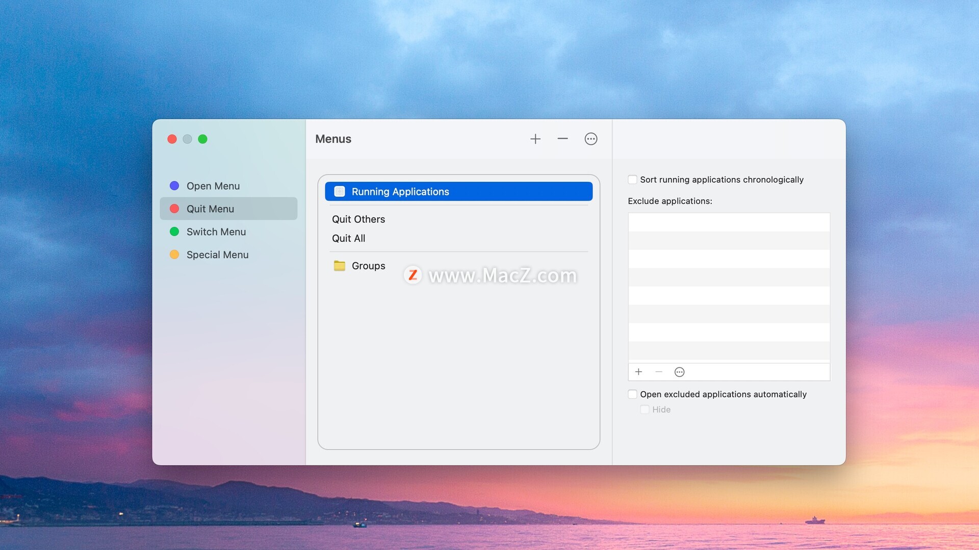 退出应用程序从未如此简单:使用应用程序向导,您可以一键退出任意组合的已打开应用程序或所有正在运行的应用程序。