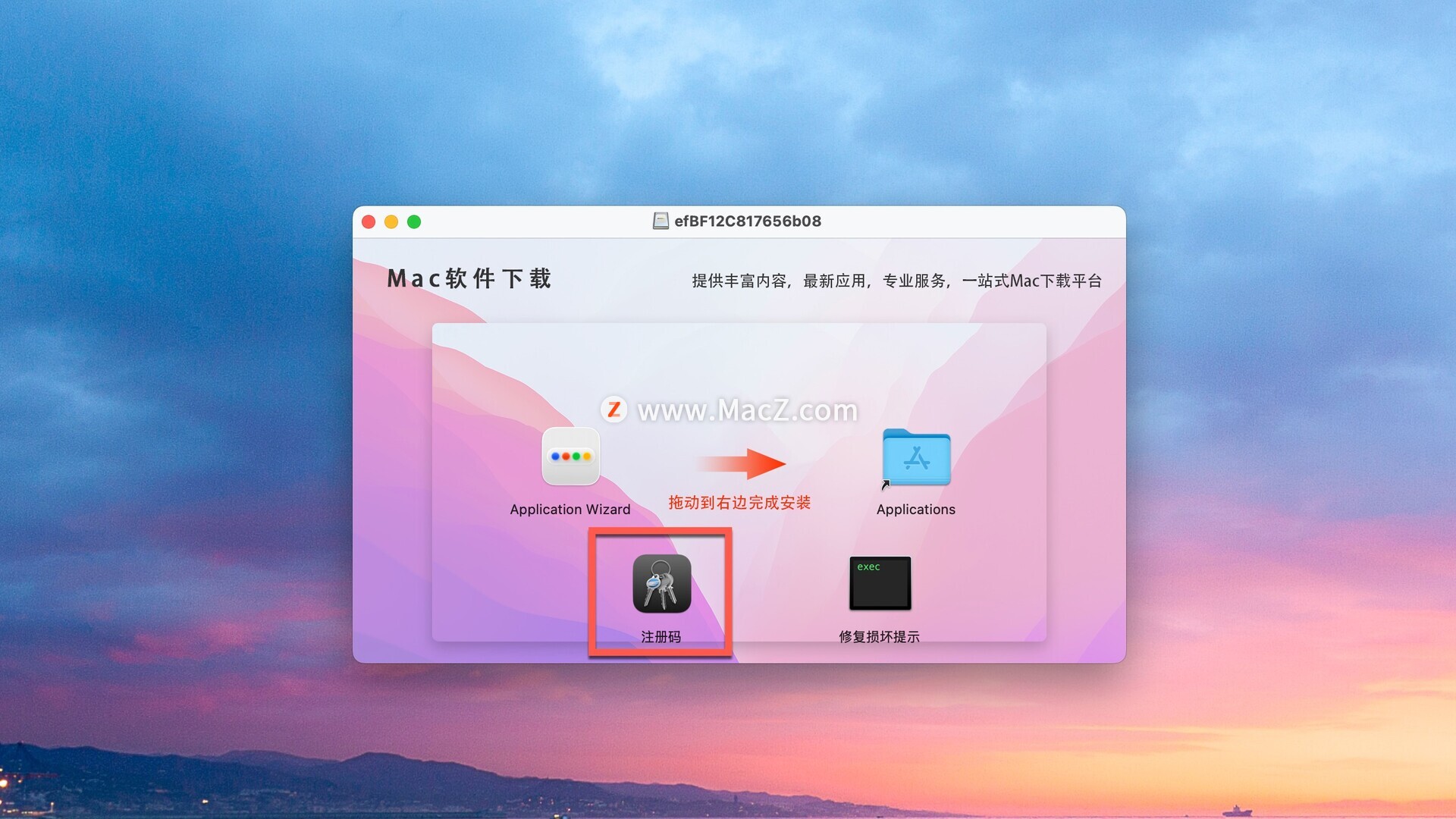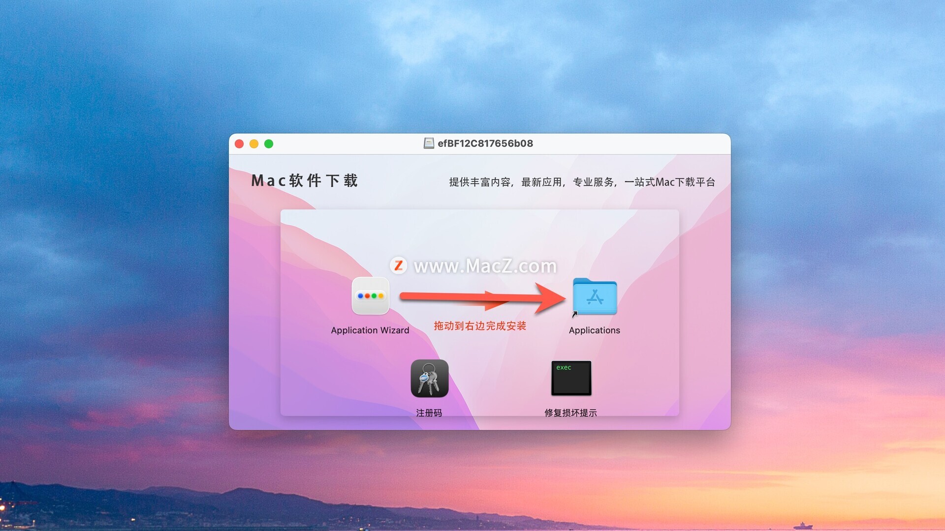 安装包下载完成后打开,将左侧Application Wizard拖动到右侧文件夹中即可