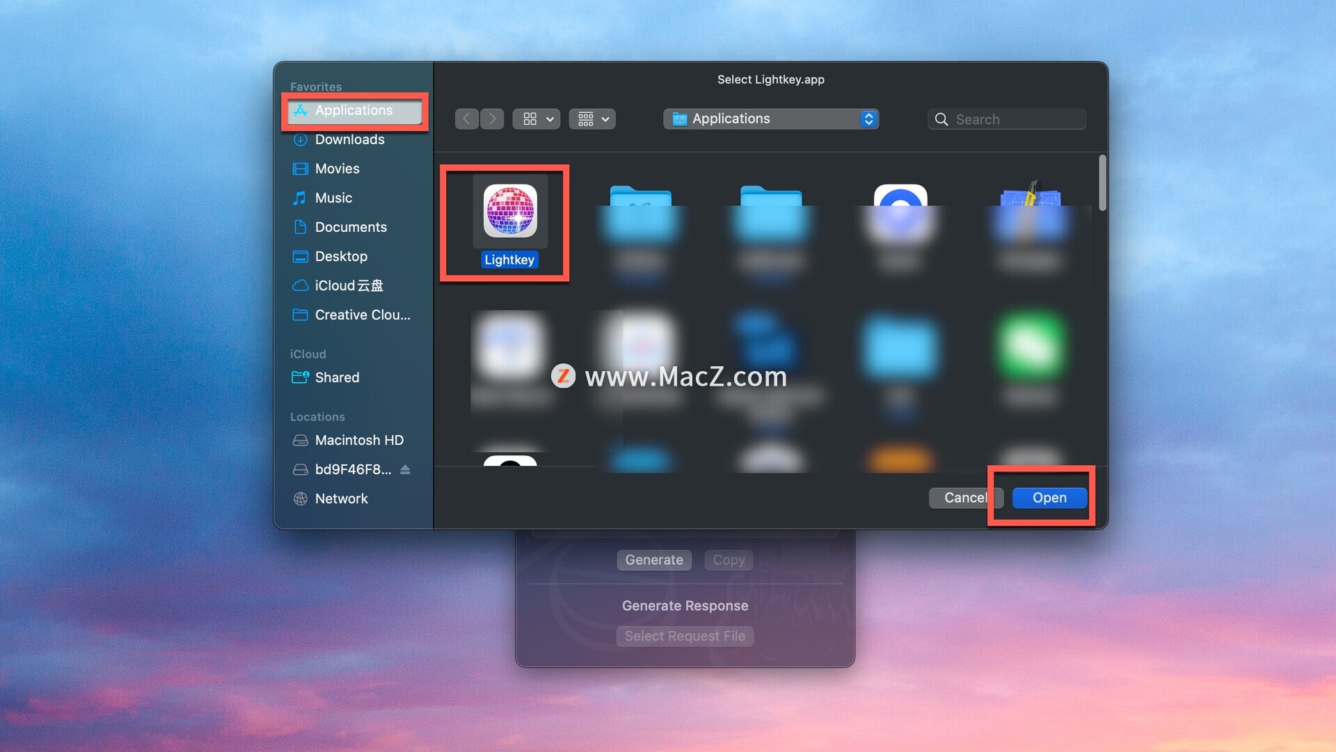 选择Lightkey 点击open