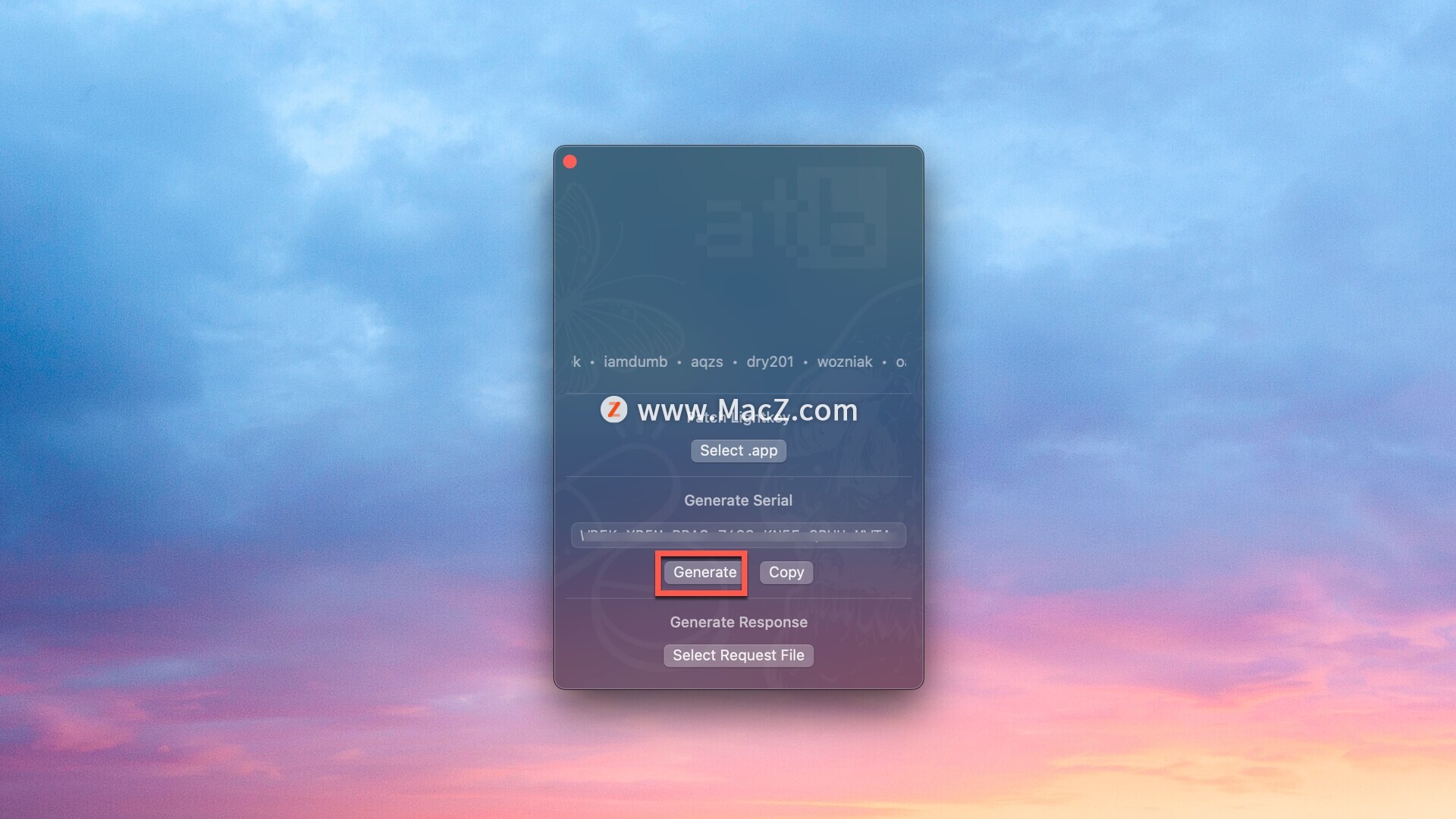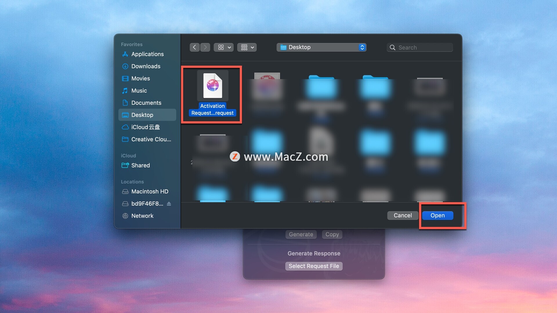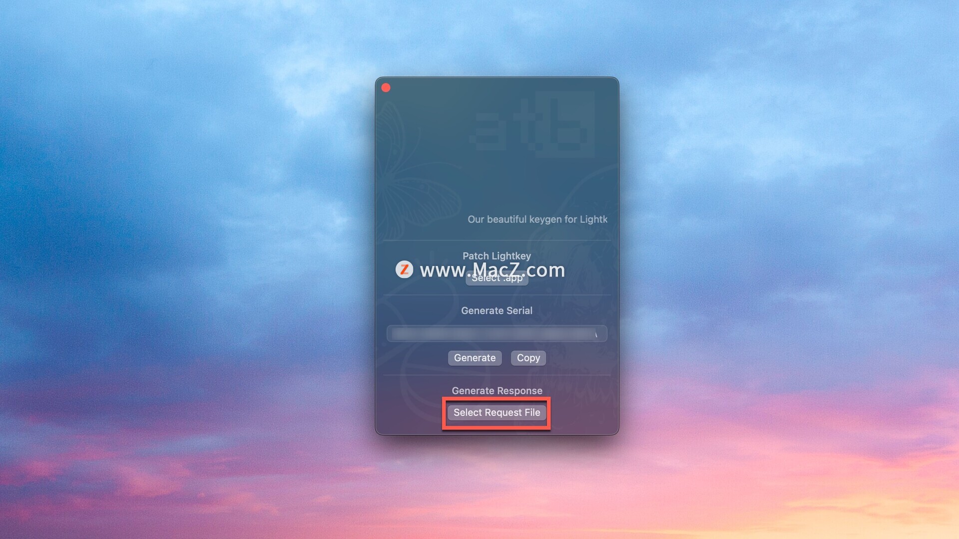 返回注册机,点击select request file