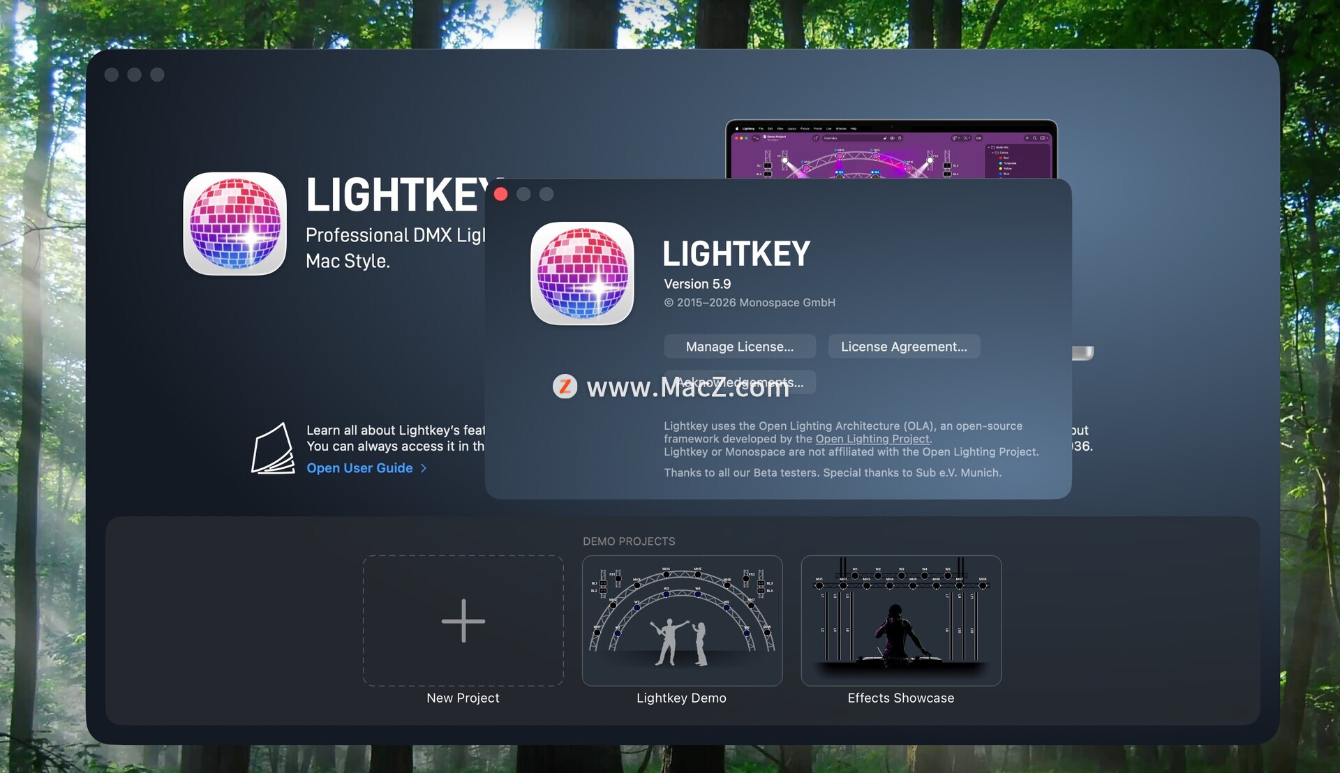 Lightkey for Mac 是一款专为现场演出和音乐制作设计的 MIDI 控制器软件,它帮助用户轻松控制灯光和视觉效果。主要面向DJ、表演艺术家以及电子音乐制作人,提供直观的界面来与多种灯光设备和视觉效果同步。